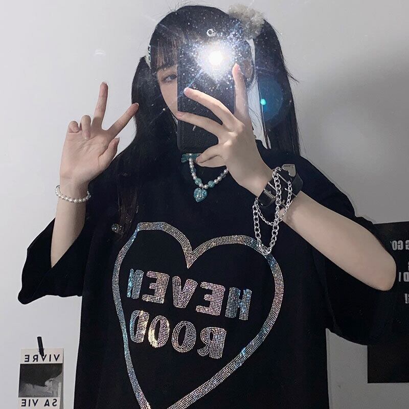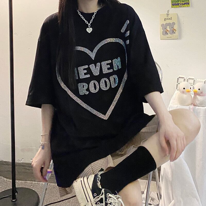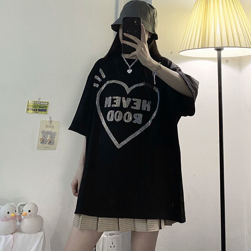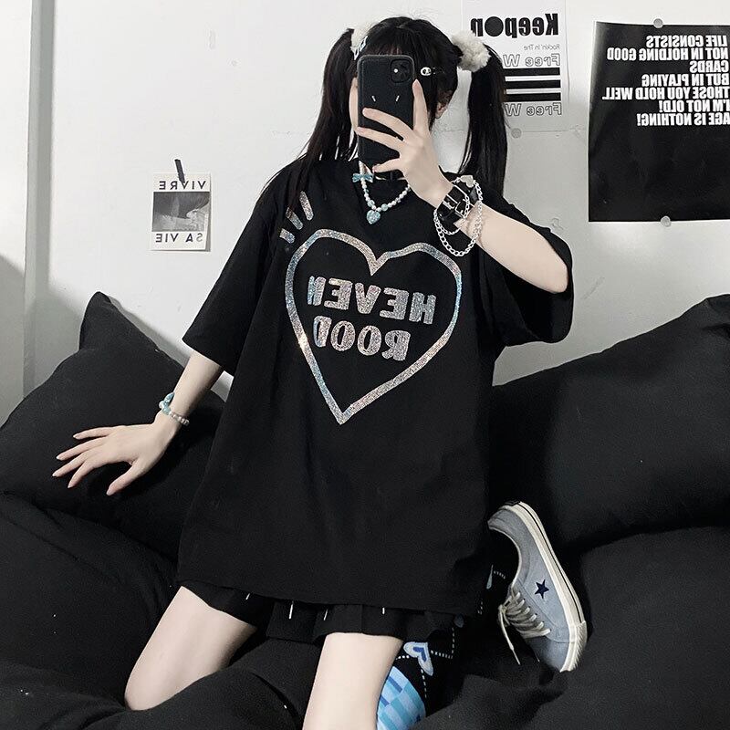 Tシャツレディース夏服韓国ファッショントレンドスタンダードブラックルーズラウンドネックカジュアルトップス レトロ 夏物 Oネック スタイル Studios6527226533 | pLegLad Studios