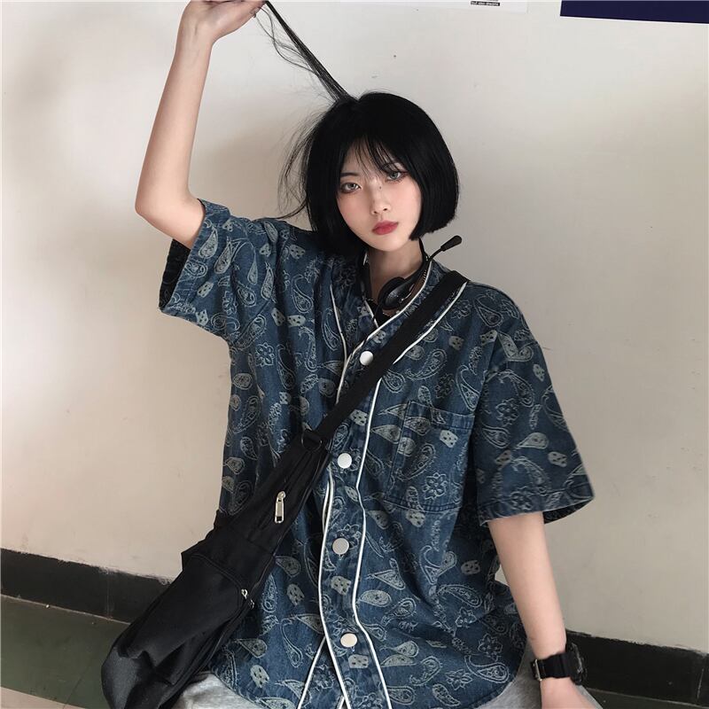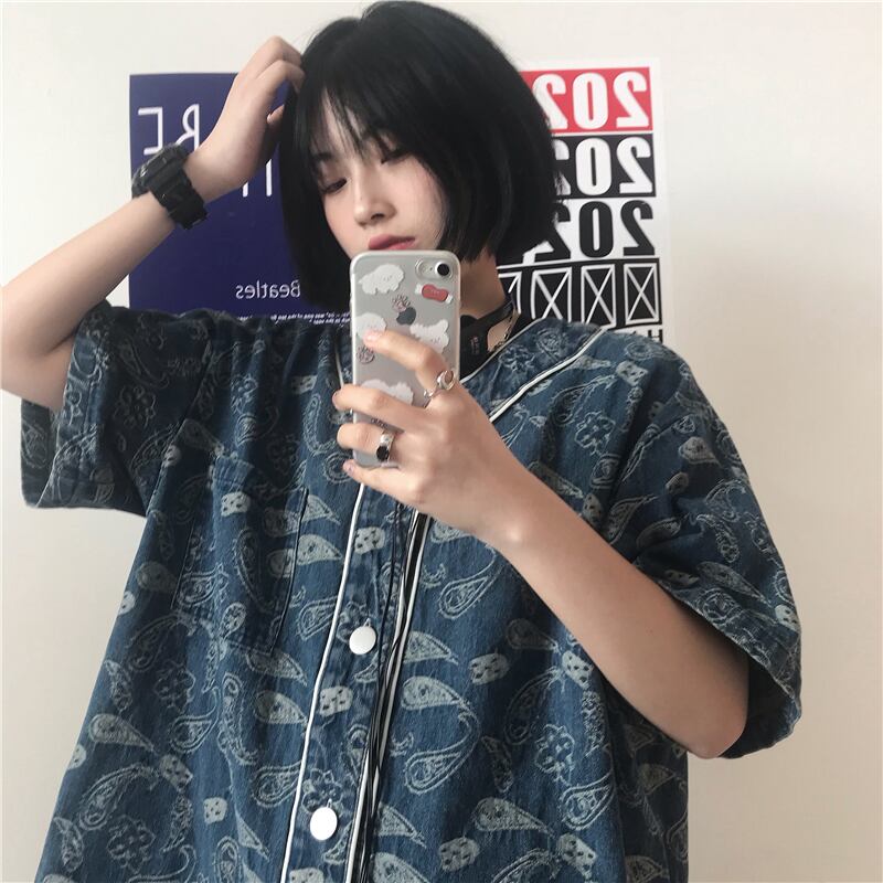 夏服韓国ファッショントレンドスタイルスタンダードFlowerデザイン 刺繍シャツ ルーズレディース レトロ 原宿 夏物 フラワーデザイン Studios57185833481 | pLegLad Studios