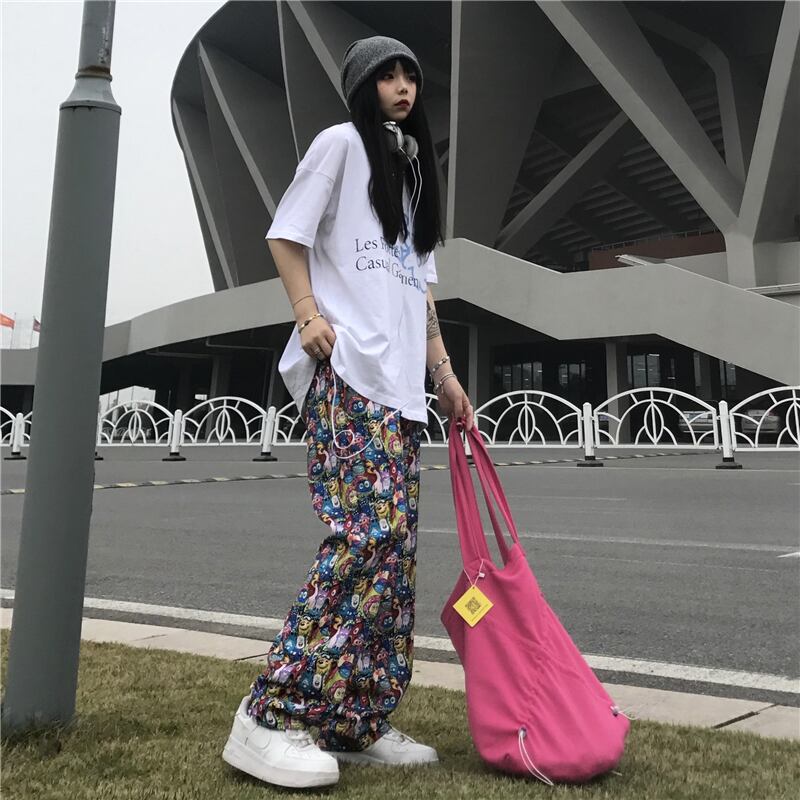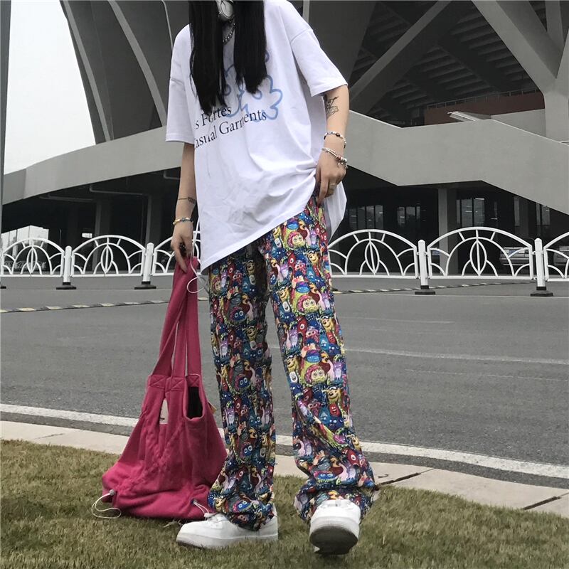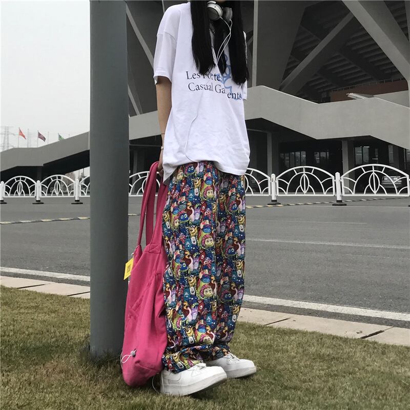 トレンドスタンダードプリント柄ストレッチウェストカジュアルパンツ ルーズメンズレディース レトロ エラスティック 伸縮 ウエスト Studios68919677502 | pLegLad Studios