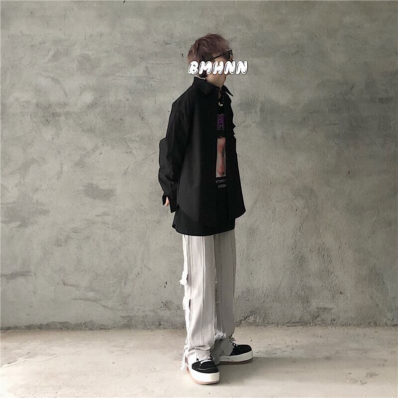 秋物韓国ファッショントレンドスタイルシャツ ルーズカジュアルジャケット メンズレディース ロング 原宿 オータム ステッチ 長袖 Studios33956992632 | pLegLad Studios