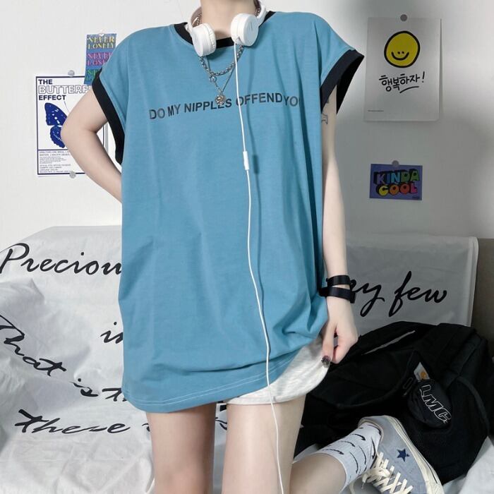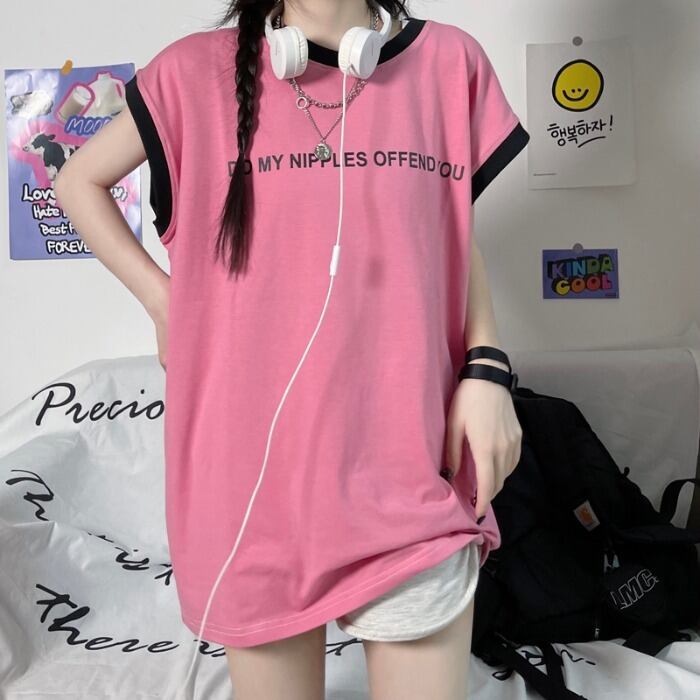 ジャケット レディース夏服韓国ファッショントレンドプリントカジュアルルーズラウンドネックノースリーブTシャツ 夏物 Oネック スタイル Studios45514944560 | pLegLad Studios