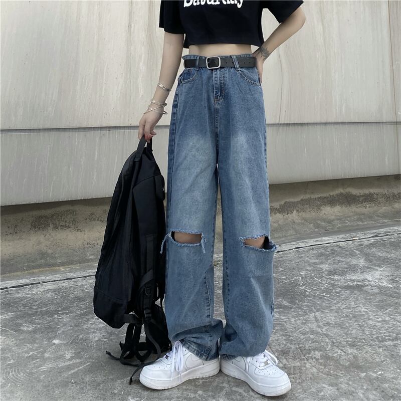 ジーンズ レディース夏服韓国ファッショントレンドスタンダードブルールーズ薄手ハイウェストウェストワイドレッグパンツ レトロ 夏物 ワイドパンツ スタイル ウエスト Studios97125401361 | pLegLad Studios
