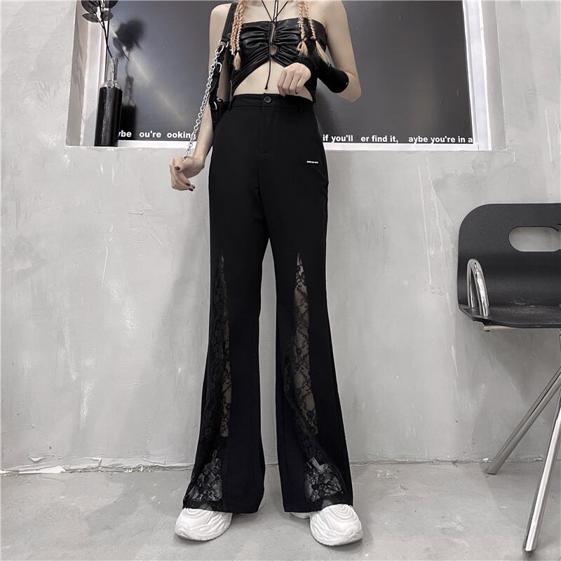 カジュアルパンツ レディース夏服韓国ファッショントレンドスタイルスタンダードレース薄手ハイウェストウェスト レトロ ストリート 夏物 ステッチ ウエスト Studios79265548515 | pLegLad Studios