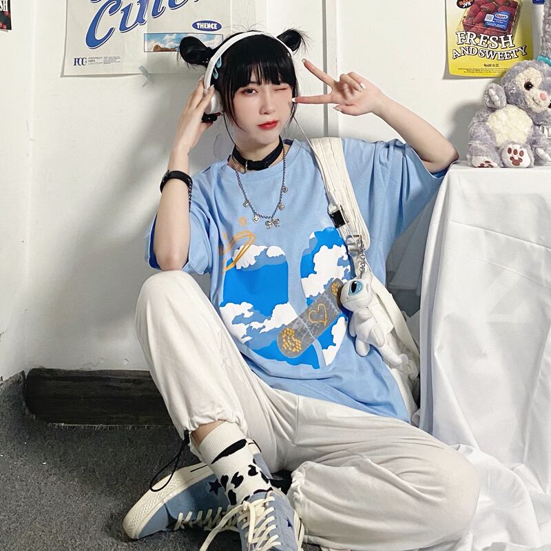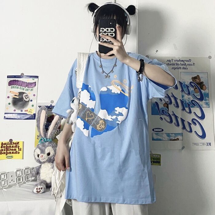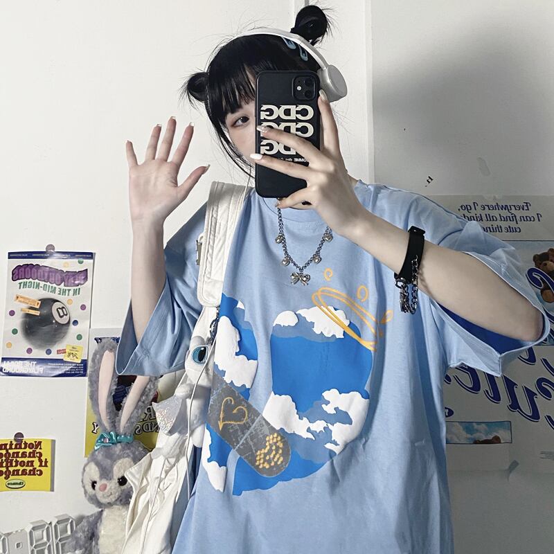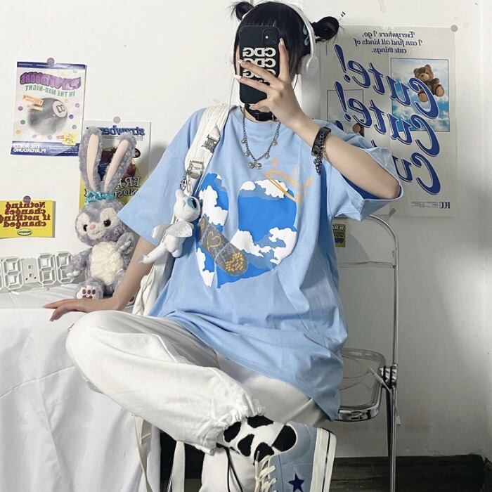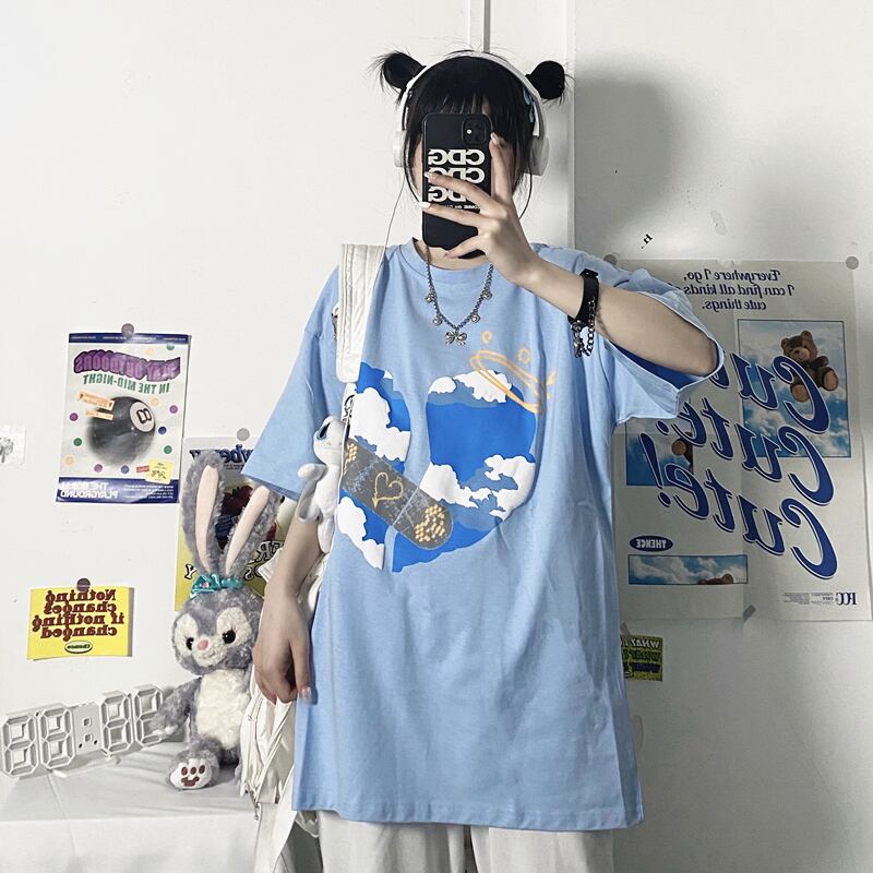Tシャツレディース夏服韓国ファッショントレンドスタンダードハートプリント柄ラウンドネックルーズカジュアルトップス レトロ 夏物 Oネック スタイル Studios32340064861 | pLegLad Studios