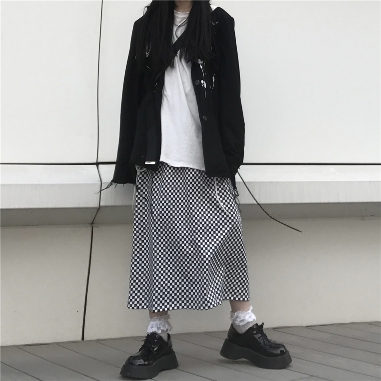 韓国ファッショントレンドスタンダードスカート ストレッチウェストAラインロングスリーブアームレディース レトロ エラスティック 伸縮 スタイル ウエスト ミドル丈 Studios75444928870 | pLegLad Studios