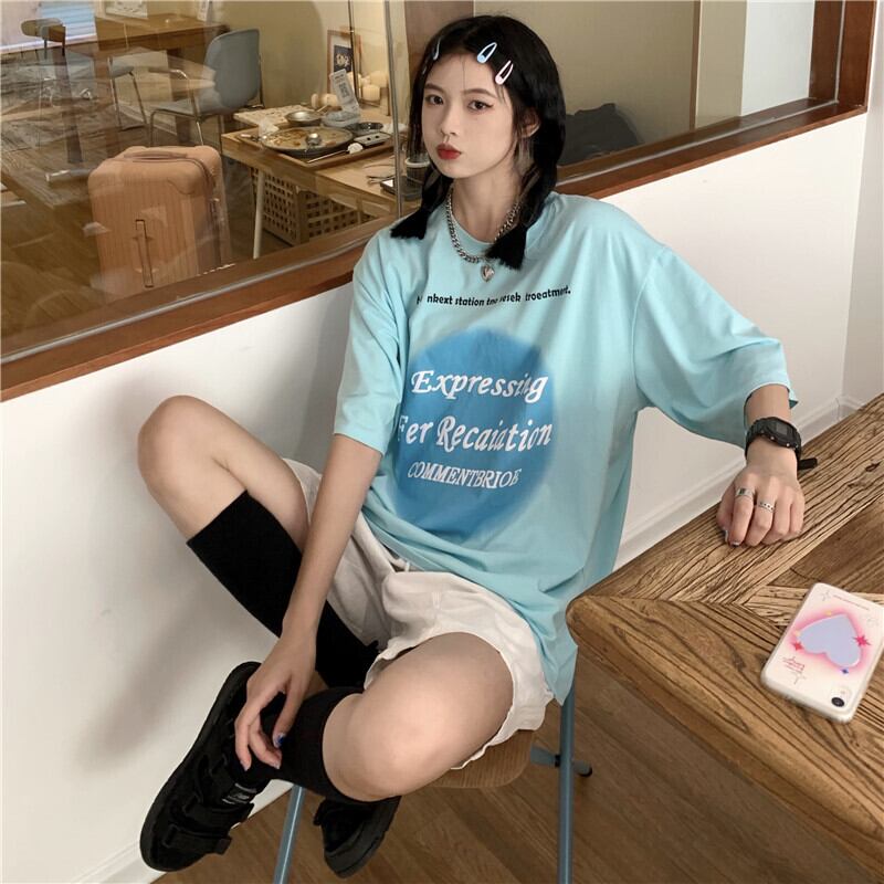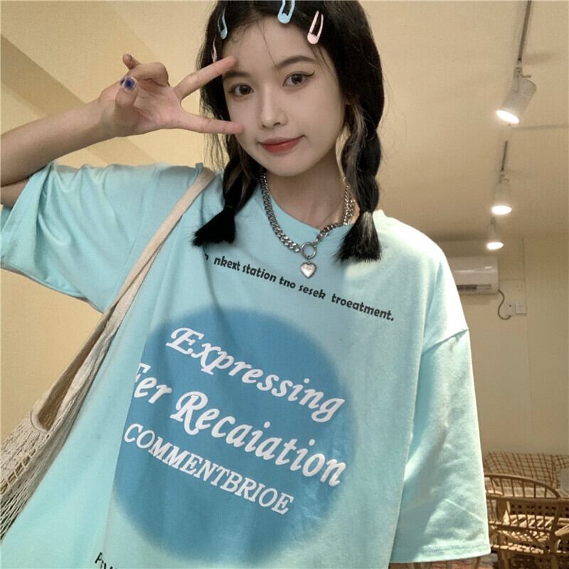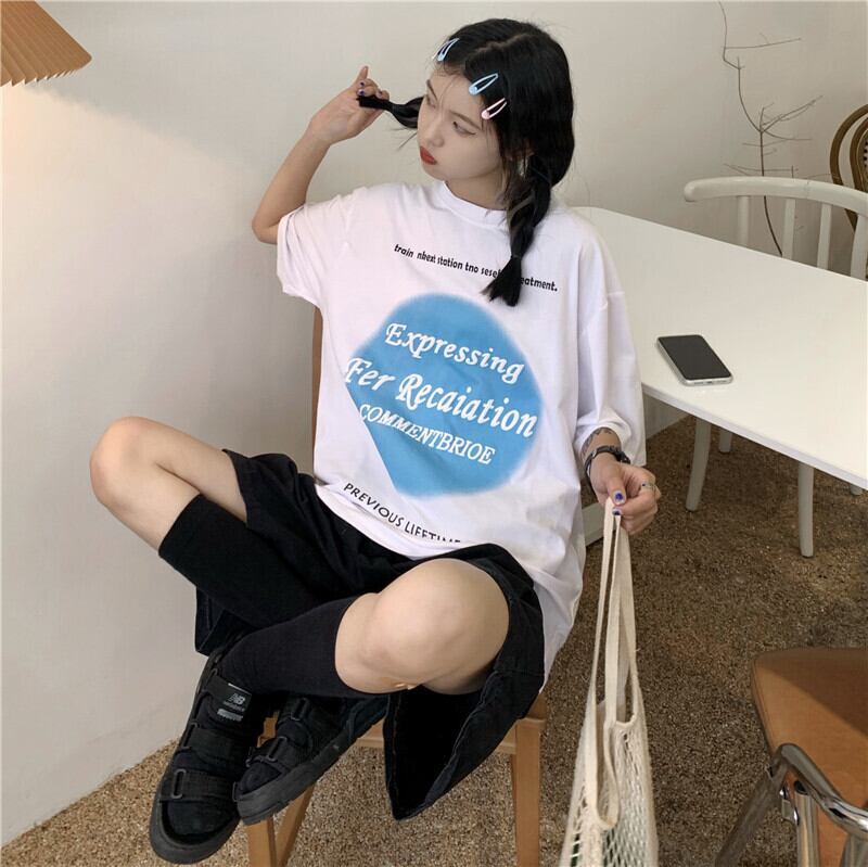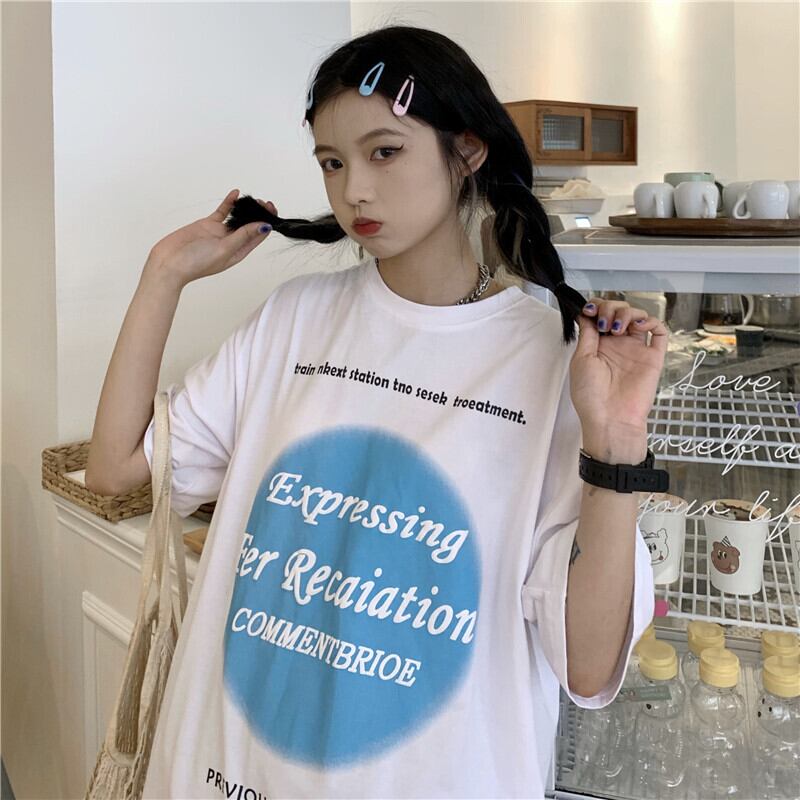 夏服韓国ファッショントレンドスタイルプリントカジュアルルーズラウンドネック半袖スリーブTシャツレディース ショート ハーフスリーブ 原宿 夏物 Oネック Studios34730419045 | pLegLad Studios