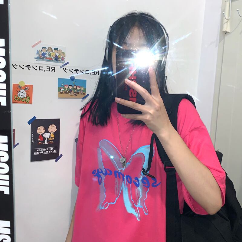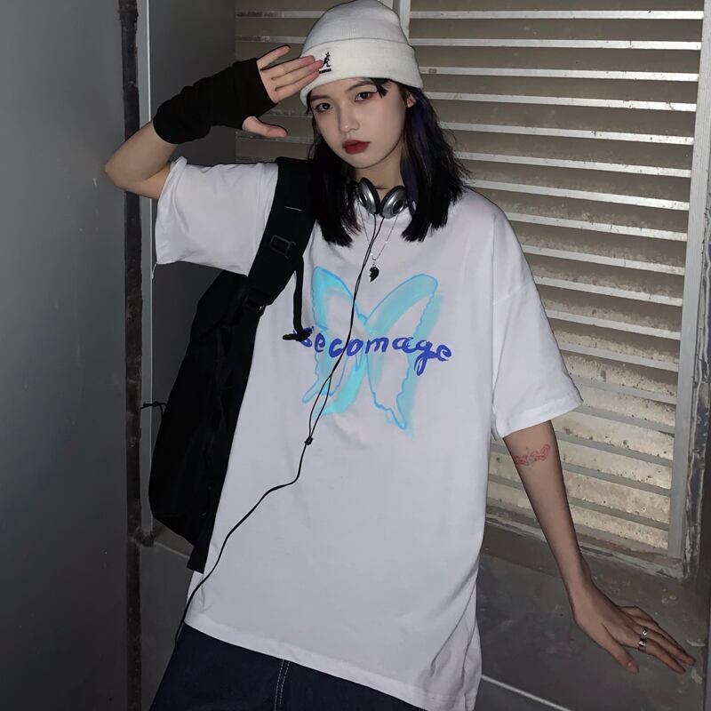 Tシャツシャツ レディース夏服韓国ファッショントレンドスタンダードダークButterflyデザイン プリント柄ルーズ レトロ 夏物 スタイル Studios72266140941 | pLegLad Studios