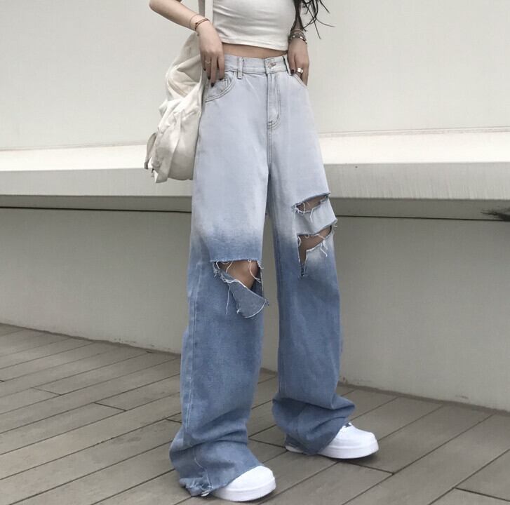 ジーンズ レディース夏服韓国ファッショントレンドスタンダードカラールーズハイウェストウェスト薄手パンツ レトロ ストリート 夏物 スタイル ウエスト Studios94647043476 | pLegLad Studios