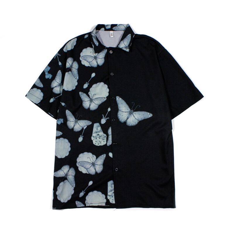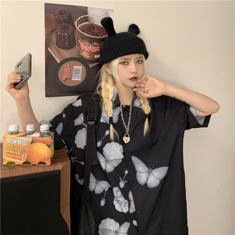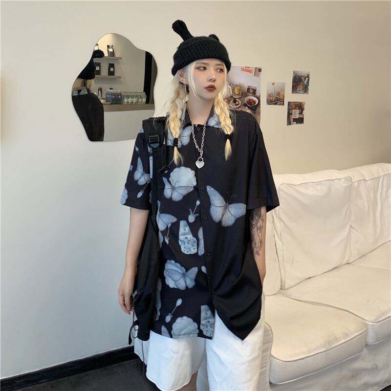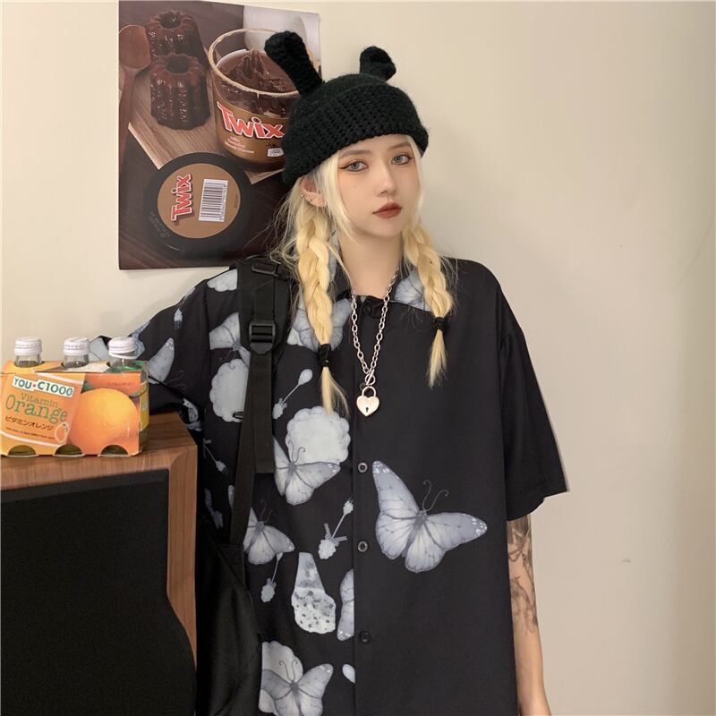 夏服韓国ファッショントレンドスタンダードButterflyデザイン プリント柄カジュアルルーズシャツ レディース レトロ ストリート 夏物 スタイル Studios61492695723 | pLegLad Studios