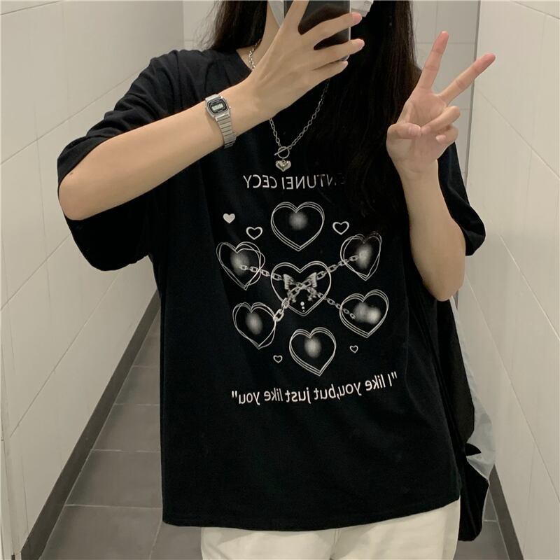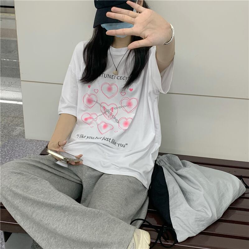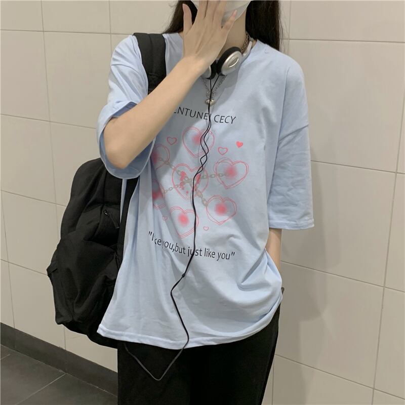 夏服韓国ファッショントレンドスタイルプリントカジュアルラウンドネックルーズTシャツレディース 大人ガーリー スウィート キュート 原宿 夏物 Oネック Studios27373804090 | pLegLad Studios