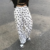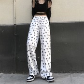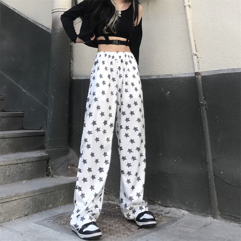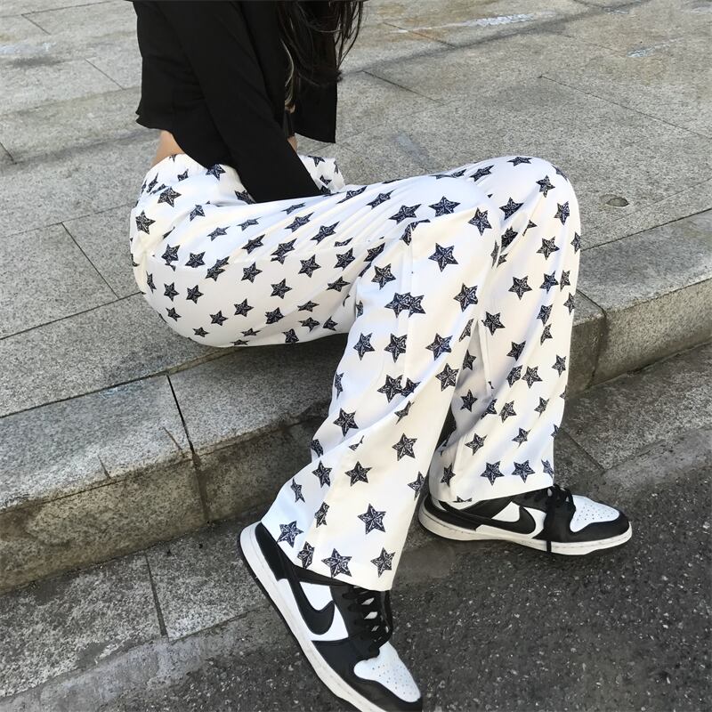 カジュアルパンツ レディース夏服韓国ファッショントレンドプリントルーズハイウェストウェストワイドレッグ ストリート 夏物 ワイドパンツ ボーイズ スタイル ウエスト Studios47245064975 | pLegLad Studios
