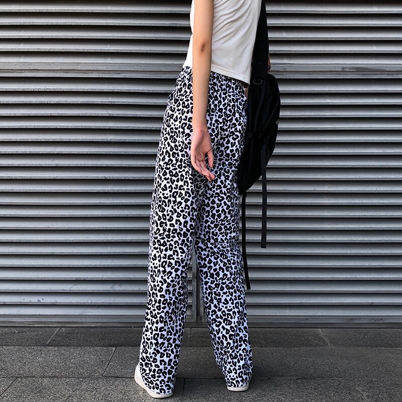 薄手カジュアルパンツ レディース夏服韓国ファッショントレンドホワイトレオパードプリント柄ハイウェストウェストルーズワイドレッグ ストリート 夏物 ワイドパンツ スタイル ウエスト Studios95159104608 | pLegLad Studios