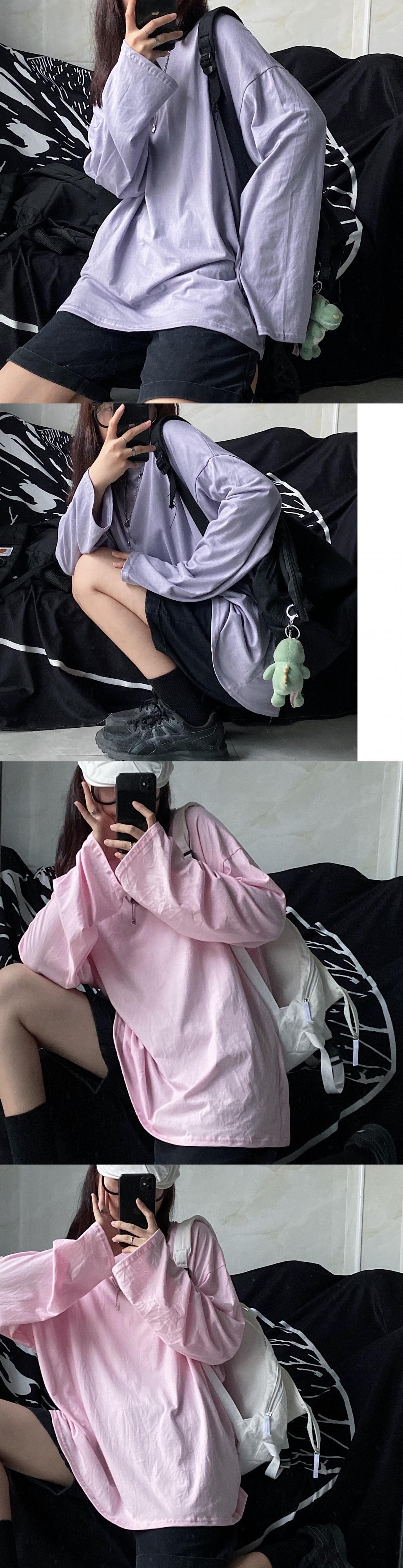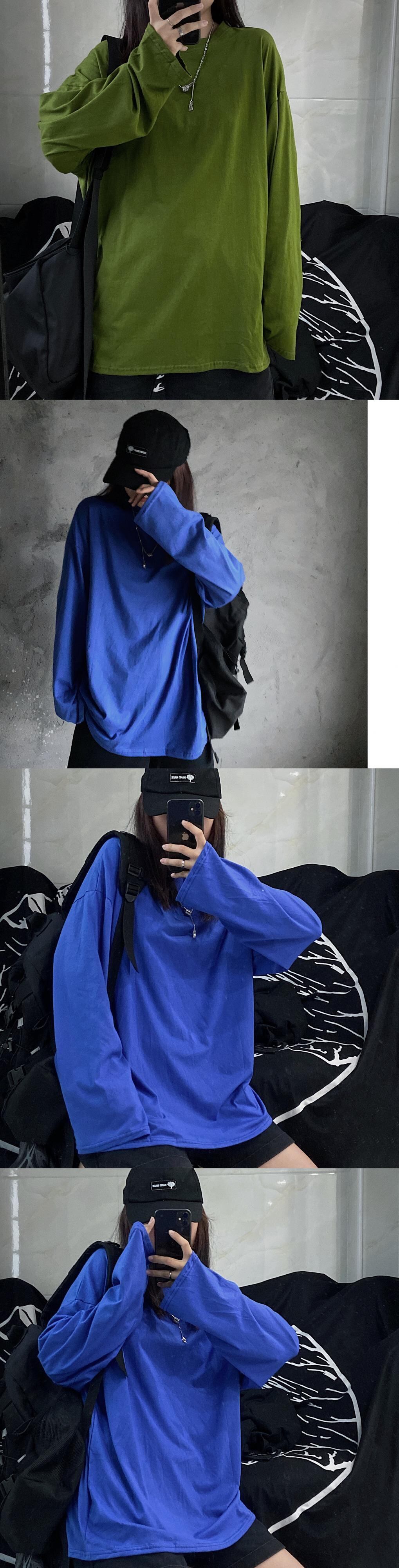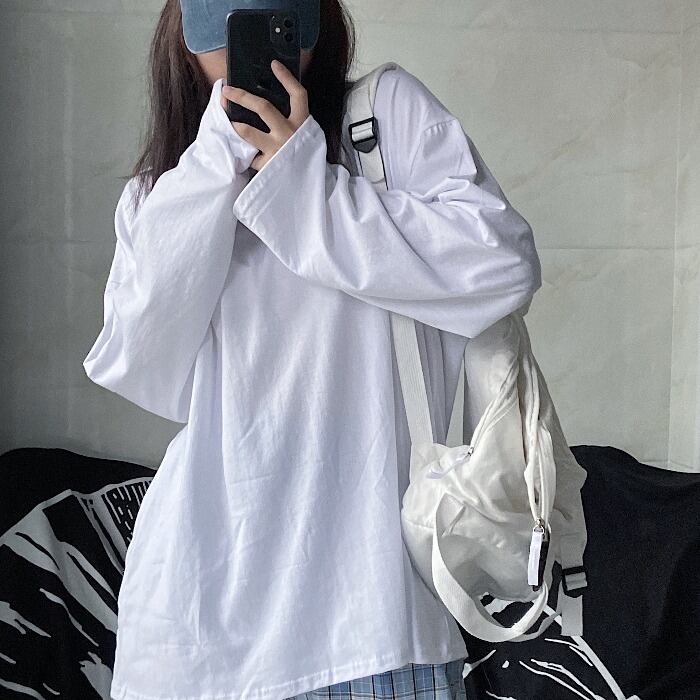 ゆったりシャツ トップス 夏服韓国ファッショントレンドスタイルベーシックソリッド カラールーズTシャツ ロング 原宿 夏物 ソリッドカラー 長袖 Studios46360055650 | pLegLad Studios