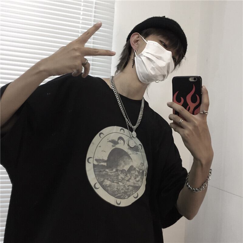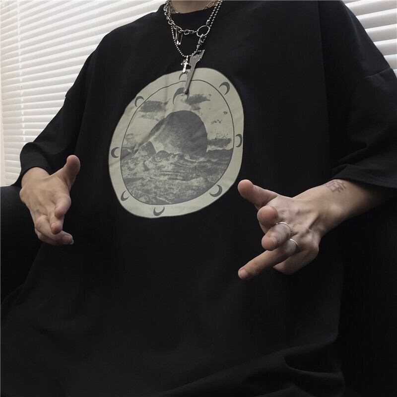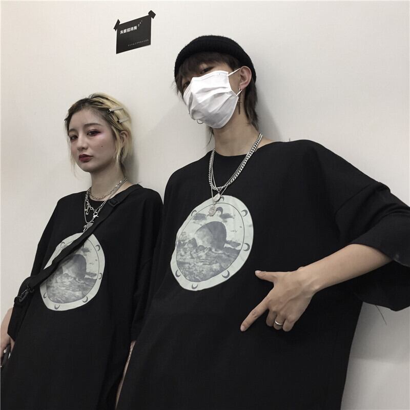 Tシャツレディース夏服韓国ファッショントレンドスタンダードプリントルーズラウンドネックカジュアルトップス レトロ 夏物 Oネック スタイル Studios96802474261 | pLegLad Studios
