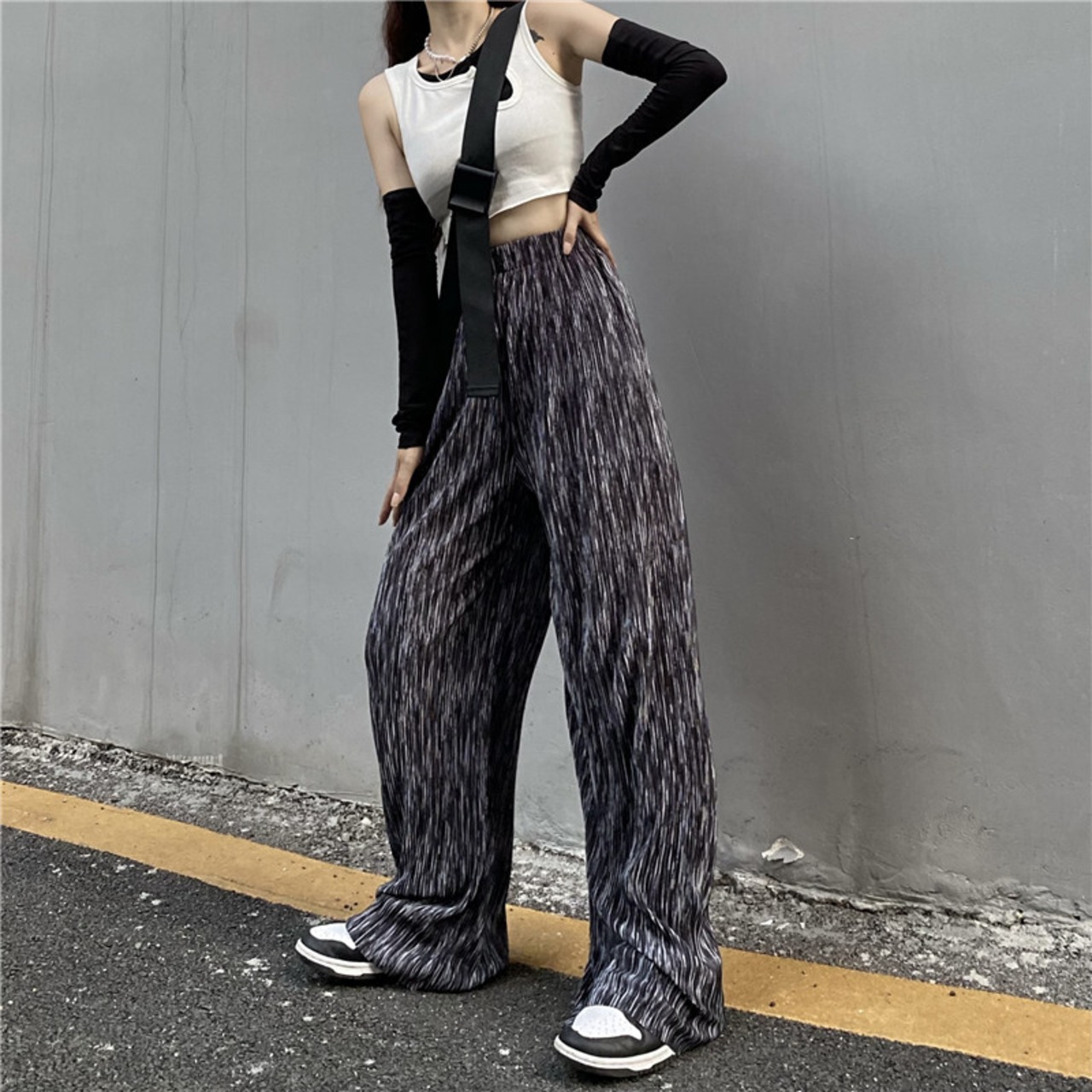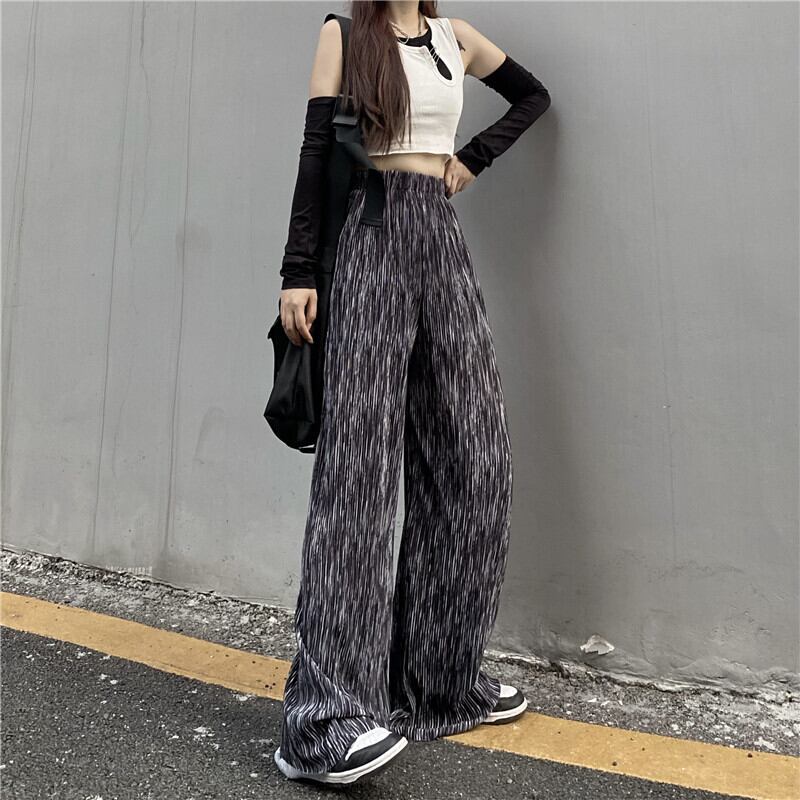 パンツ レディース夏服韓国ファッショントレンドスタンダードルーズハイウェストウェスト薄手カジュアル レトロ 夏物 シルク スタイル ウエスト Studios95612701008 | pLegLad Studios