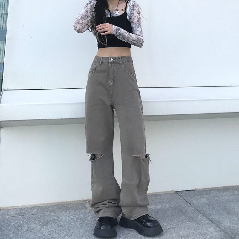 ジーンズ レディース夏服韓国ファッショントレンドスタイルスタンダードルーズ薄手ハイウェストパンツ レトロ 原宿 夏物 ウエスト Studios49985943119 | pLegLad Studios