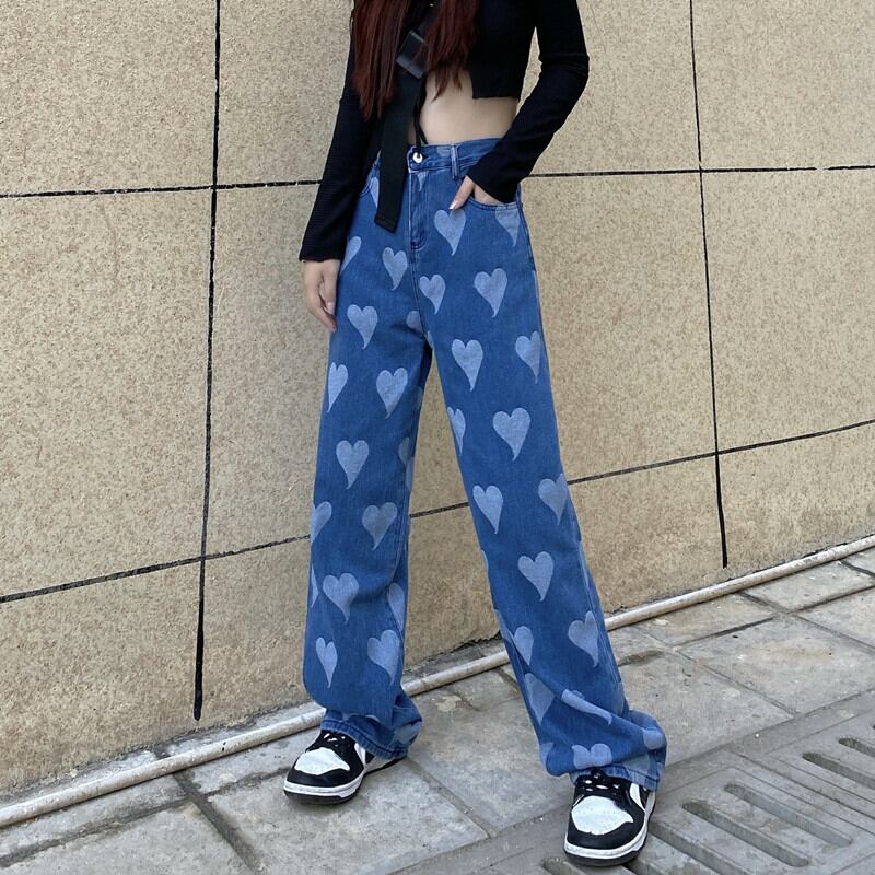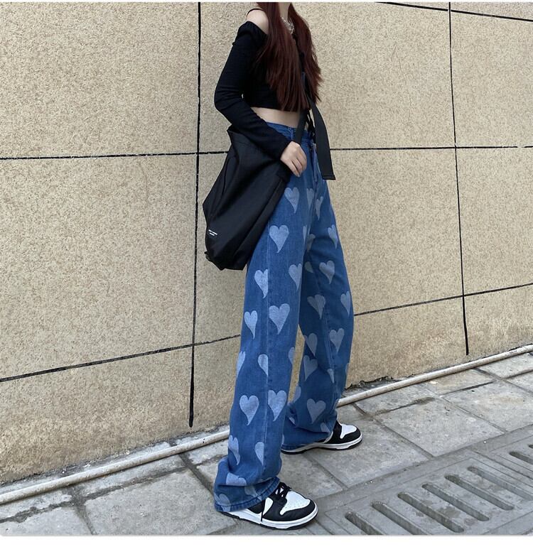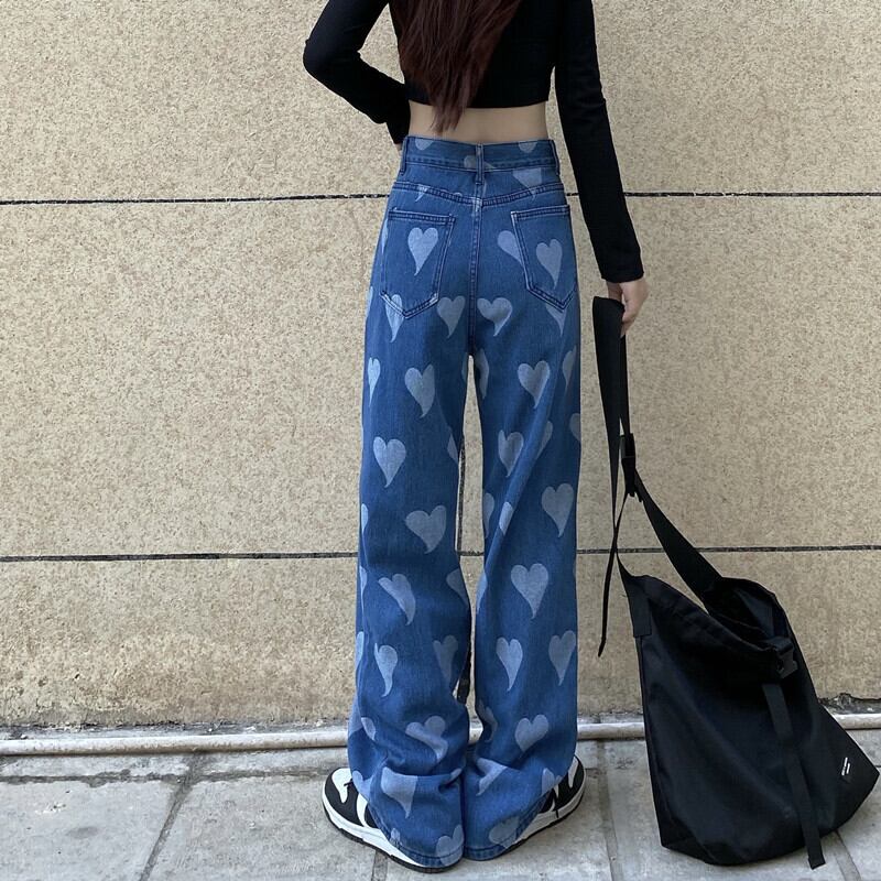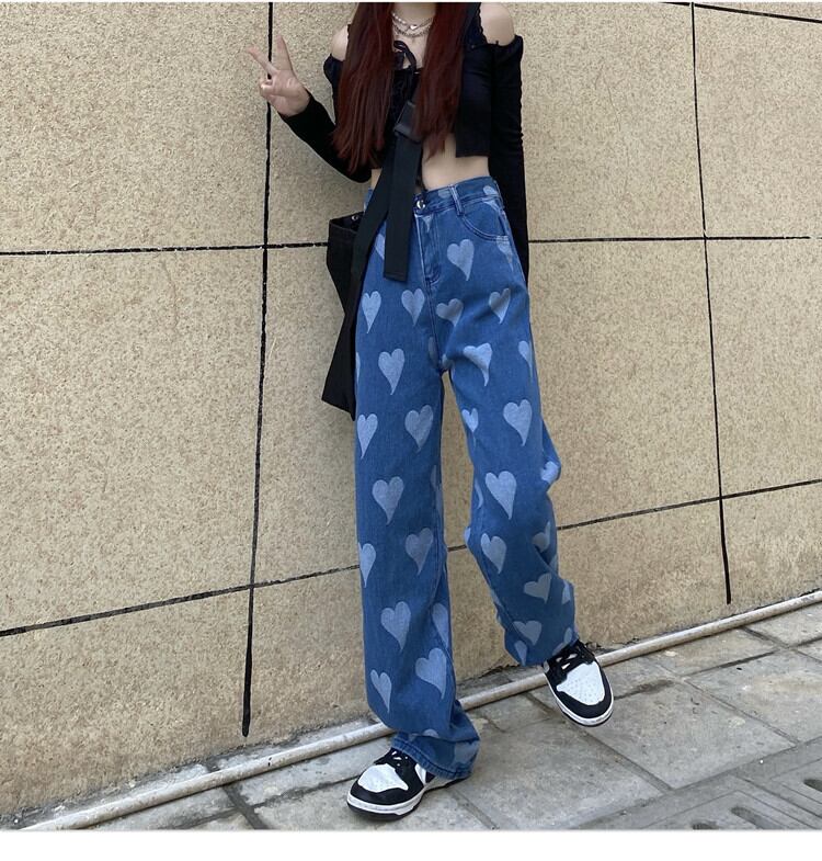 ジーンズ レディース夏服韓国ファッショントレンドスタンダードプリントハイウェストウェスト薄手ルーズパンツ レトロ ストリート 夏物 スタイル ウエスト Studios47945324628 | pLegLad Studios
