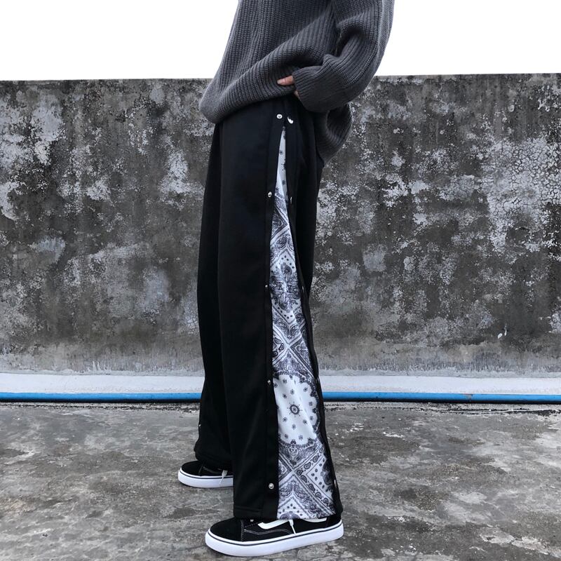 韓国ファッショントレンドスタンダードFlowerデザイン カジュアルパンツ ボタンルーズメンズレディース レトロ ストリート フラワーデザイン ステッチ スタイル Studios35364143831 | pLegLad Studios