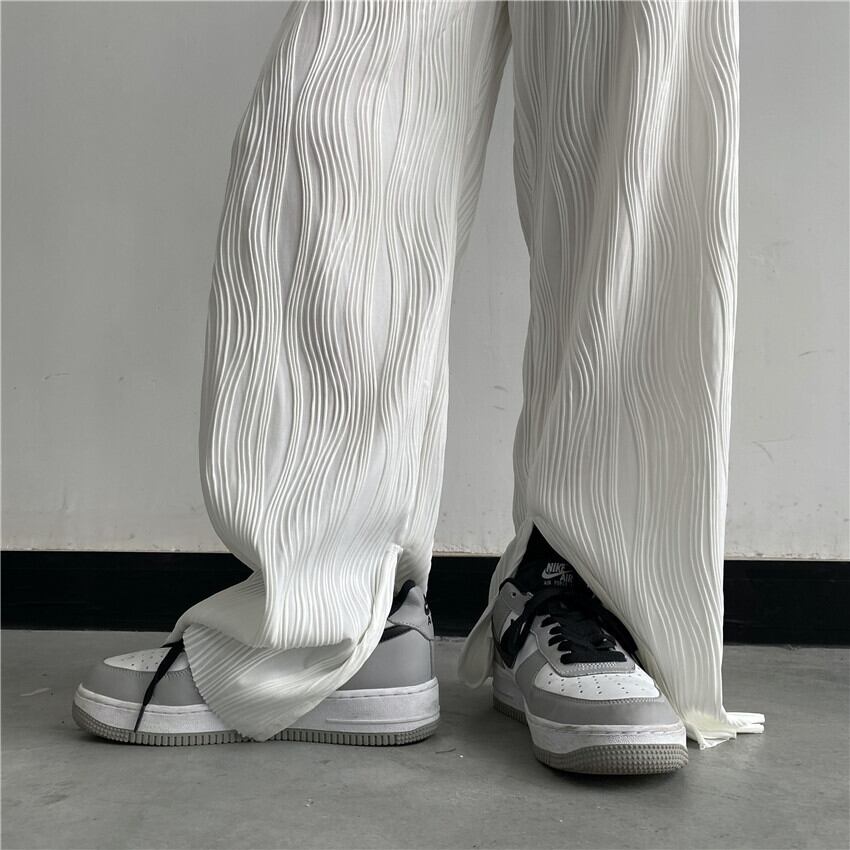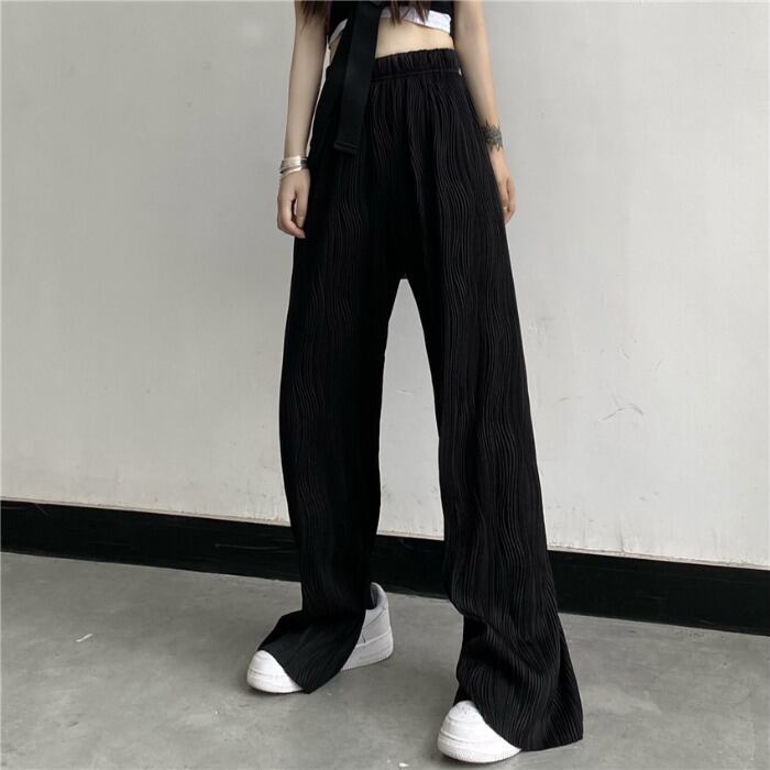 ワイドレッグパンツ レディース夏服韓国ファッショントレンドスタンダードストライプルーズハイウェストウェストカジュアル レトロ 夏物 ワイドパンツ スタイル ウエスト Studios67274101673 | pLegLad Studios