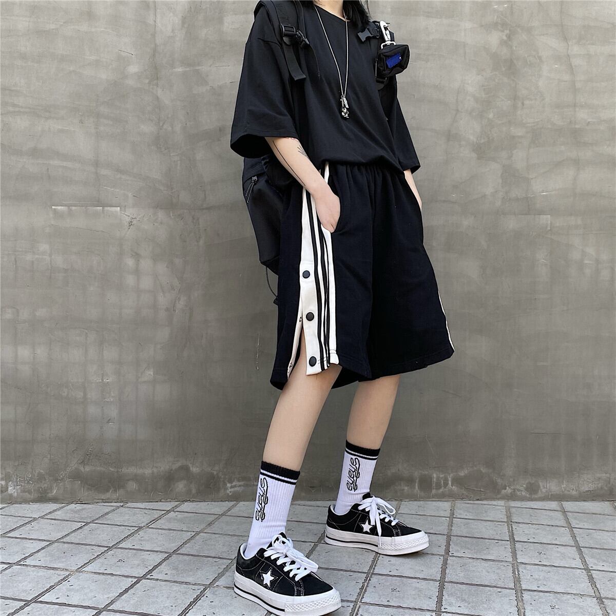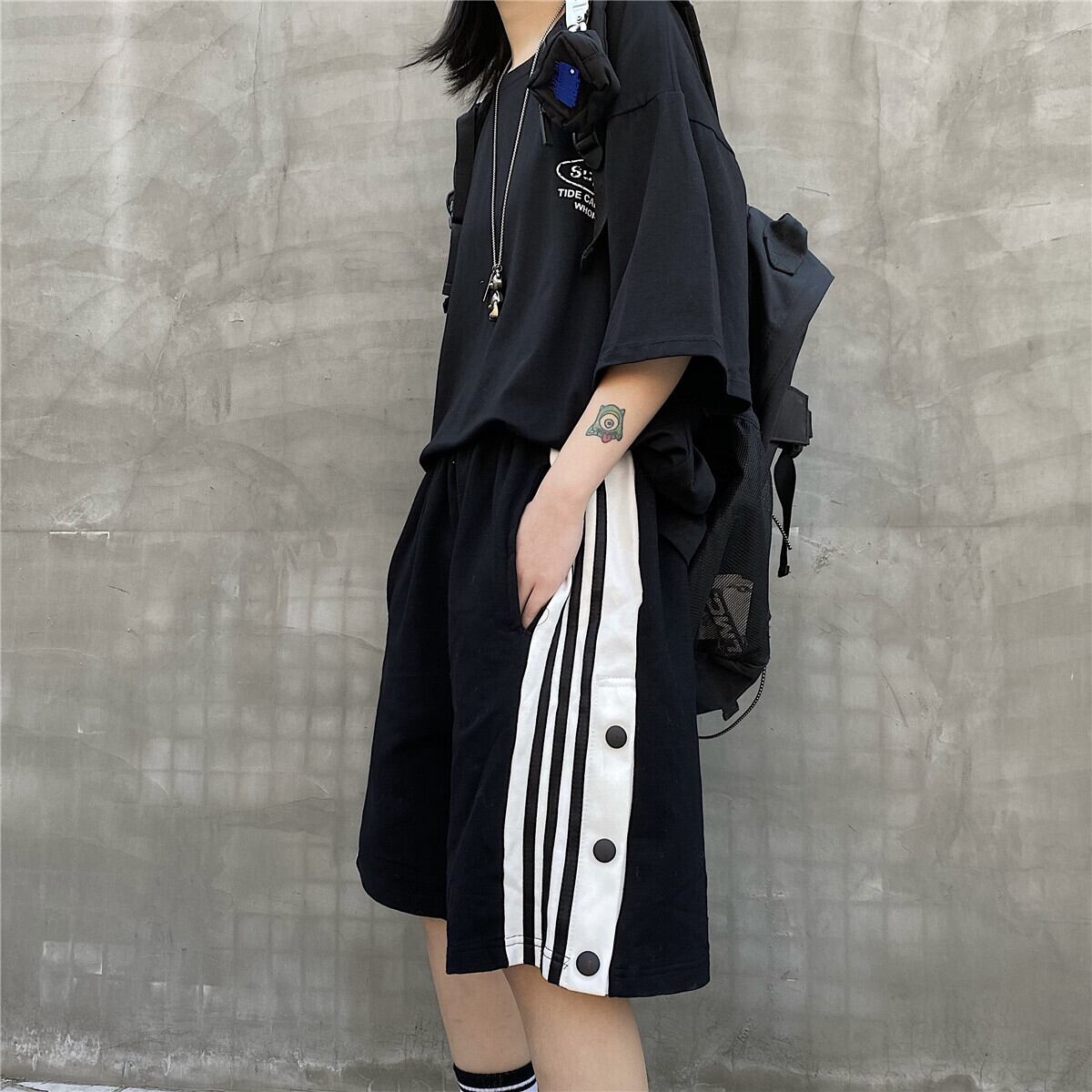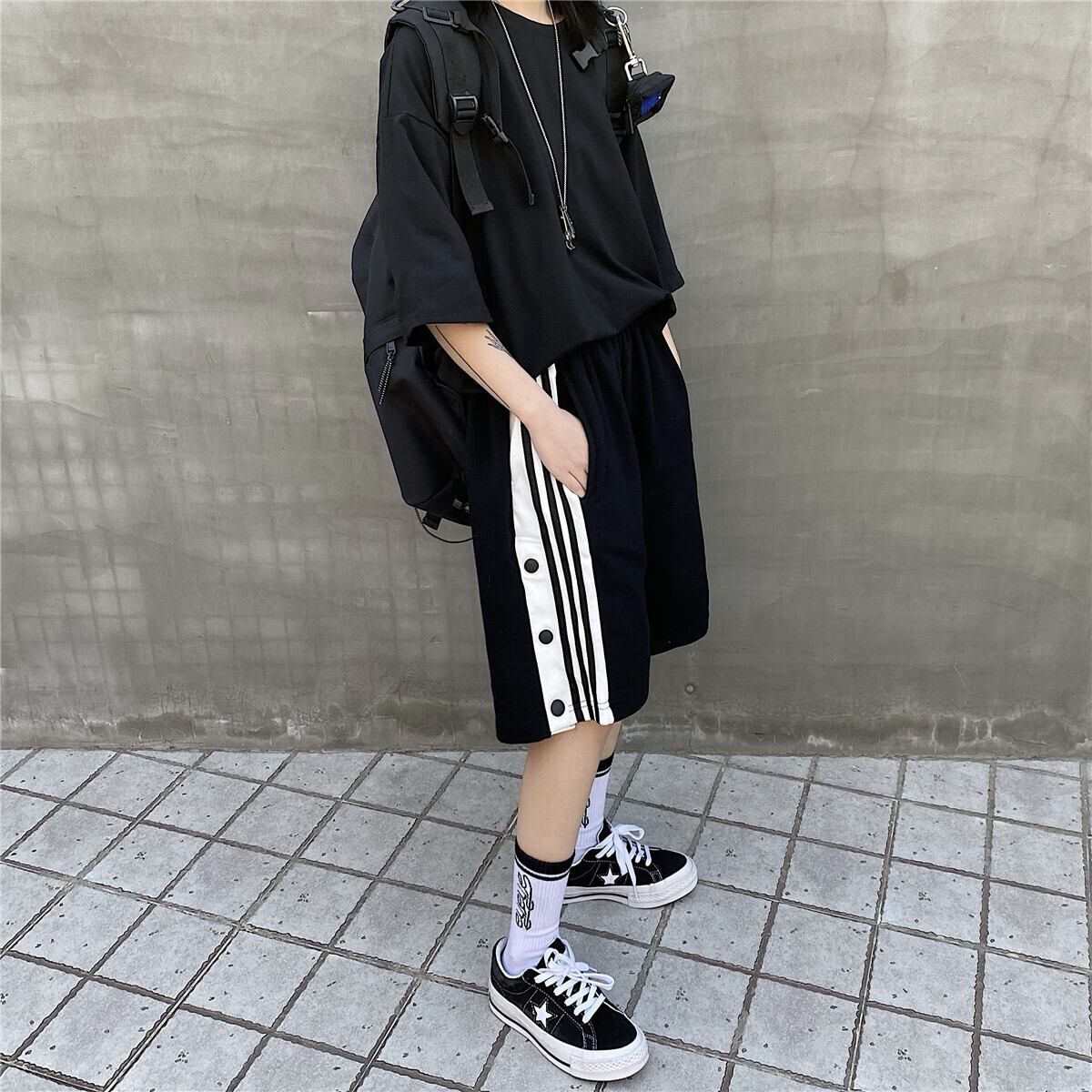 夏服韓国ファッショントレンドカジュアルルーズカラーポケットボタンストレッチウェストショーツ メンズレディース エラスティック 伸縮 夏物 スタイル ウエスト Studios30478130560 | pLegLad Studios