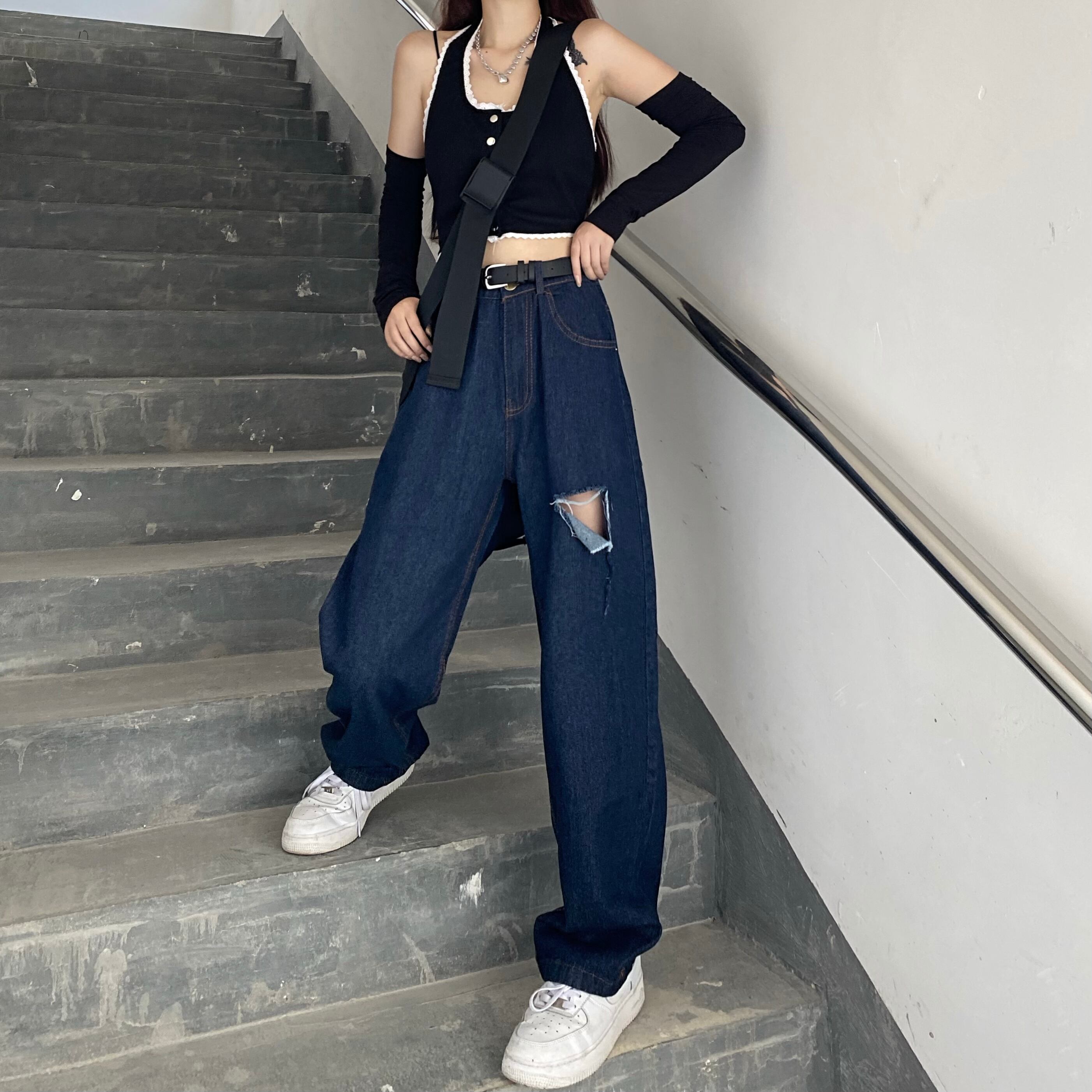 夏服韓国ファッショントレンドスタンダードルーズハイウェストウェストワイドレッグジーンズ レディース レトロ ストリート 夏物 ワイドパンツ ボーイズ スタイル ウエスト Studios42281720441 | pLegLad Studios