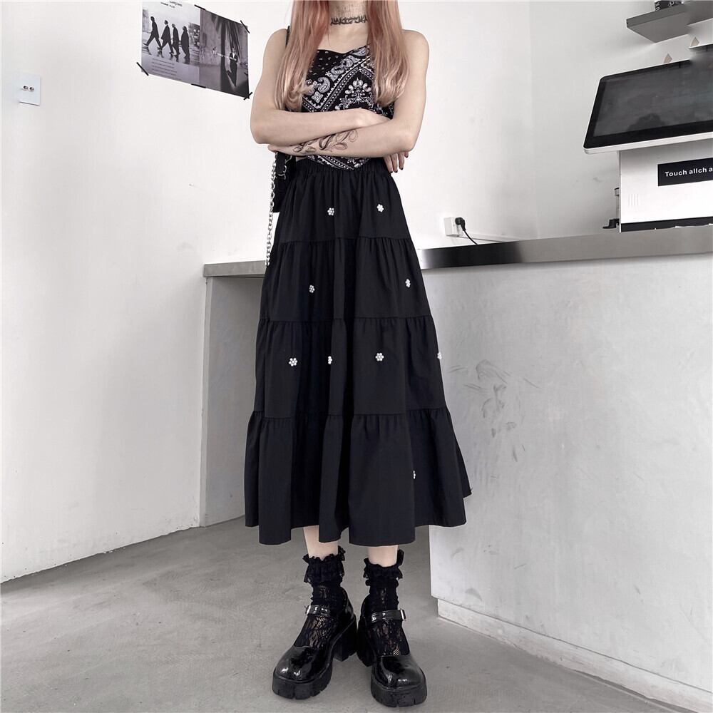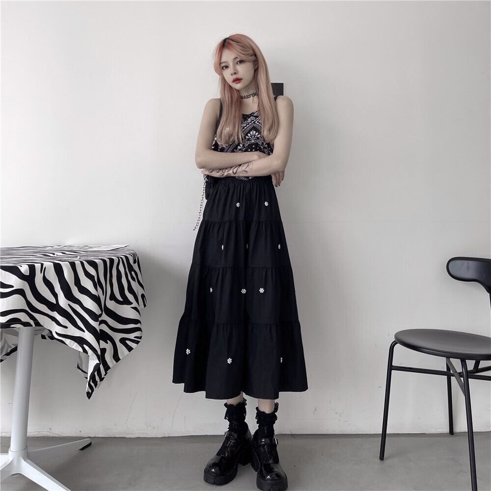 夏服韓国ファッショントレンドパールFlowerデザイン Aラインスカート ストレッチウェストレディース ストリート エラスティック 伸縮 大人ガーリー スウィート キュート カジュアル 夏物 真珠 フラワーデザイン ステッチ スタイル ウエスト Studios39897961876 | pLegLad Studios