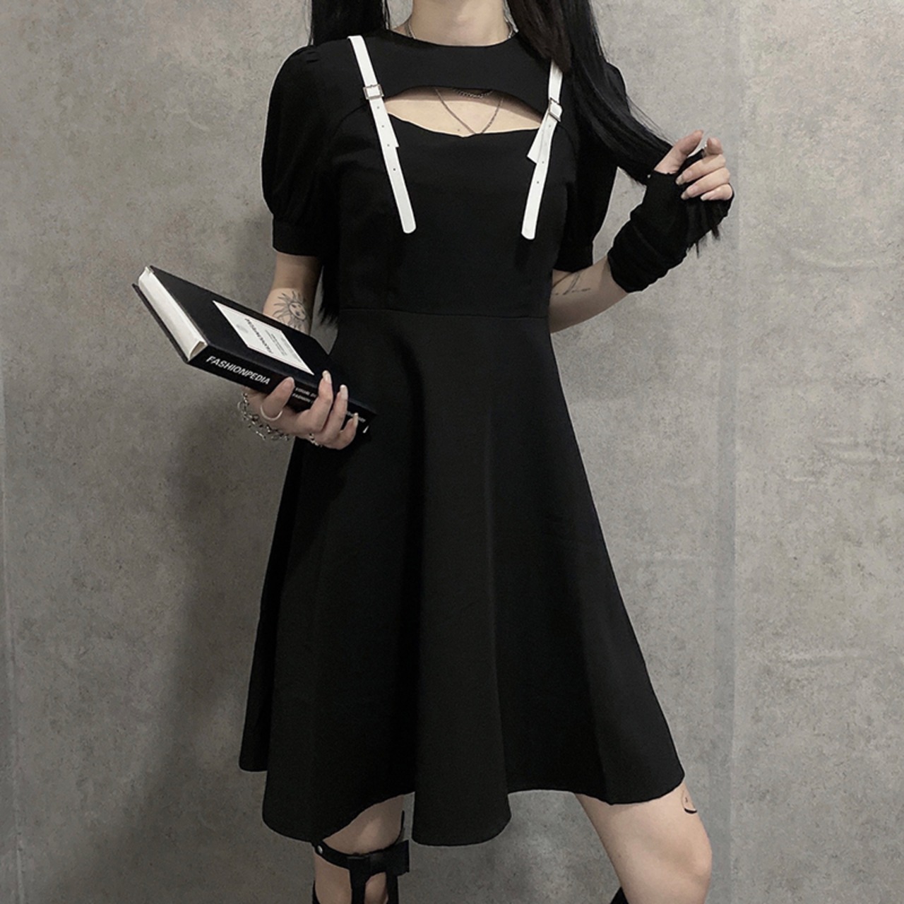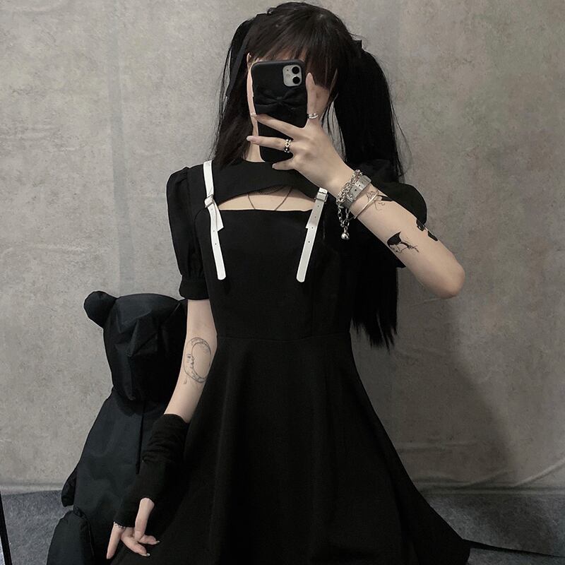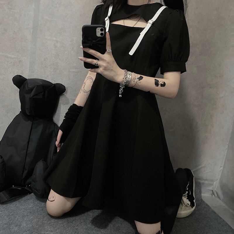ショートスカート レディース夏服韓国ファッショントレンドスリーブベルト ウェストAラインワンピース 大人ガーリー スウィート キュート カジュアル 夏物 ハーネス ステッチ スタイル ウエスト Studios90951861408 | pLegLad Studios