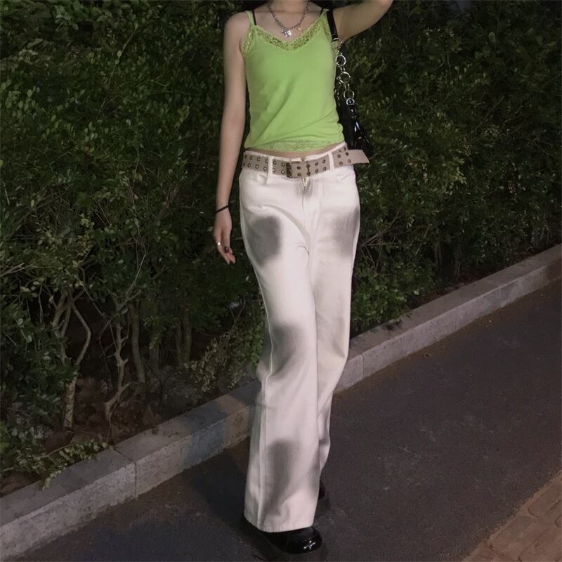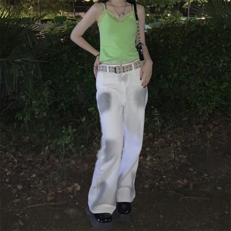 夏服韓国ファッショントレンドスタイルスタンダードハイウェストルーズパンツ 薄手ジーンズ レディース レトロ 原宿 夏物 ウエスト Studios98786943905 | pLegLad Studios