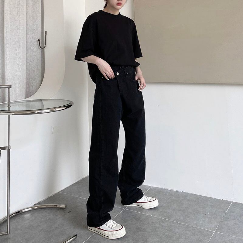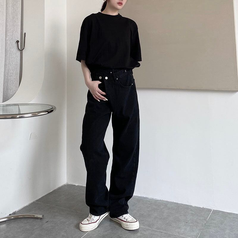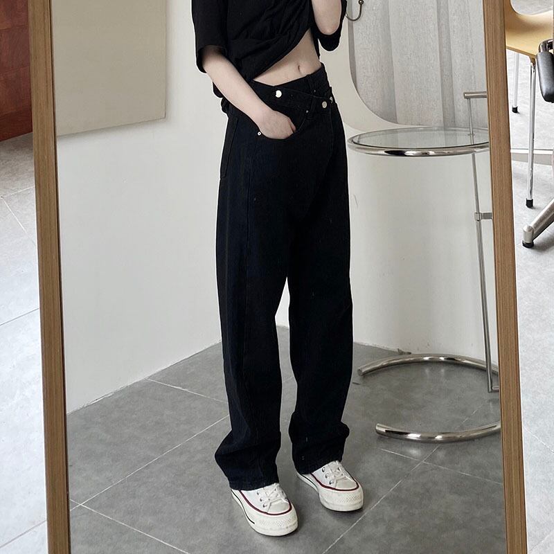 韓国ファッショントレンドスタンダードバックルハイウェストウェストルーズカジュアルパンツ ジーンズ レディース レトロ ストリート ウエスト Studios56264811160 | pLegLad Studios