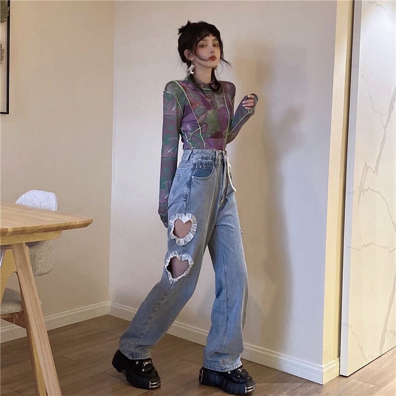 ジーンズ レディース夏服韓国ファッショントレンドスタンダードレースルーズハイウェストウェストワイドレッグ レトロ ストリート 夏物 ワイドパンツ スタイル ウエスト Studios1234174120 | pLegLad Studios