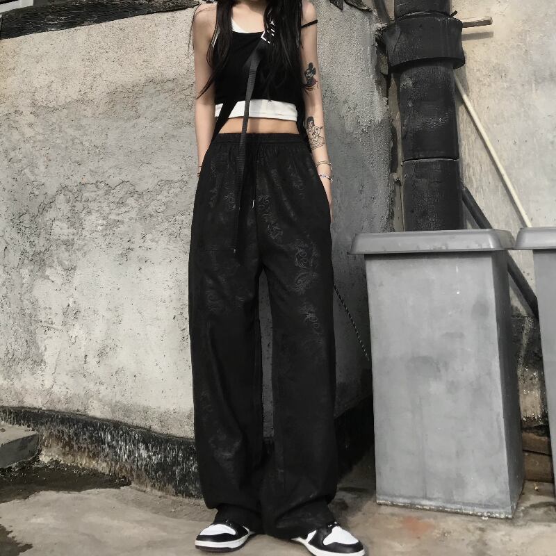 ワイドレッグパンツ レディース夏服韓国ファッショントレンドスタンダードFlowerデザイン ルーズ薄手カジュアル レトロ 夏物 ワイドパンツ フラワーデザイン スタイル Studios4219942736 | pLegLad Studios