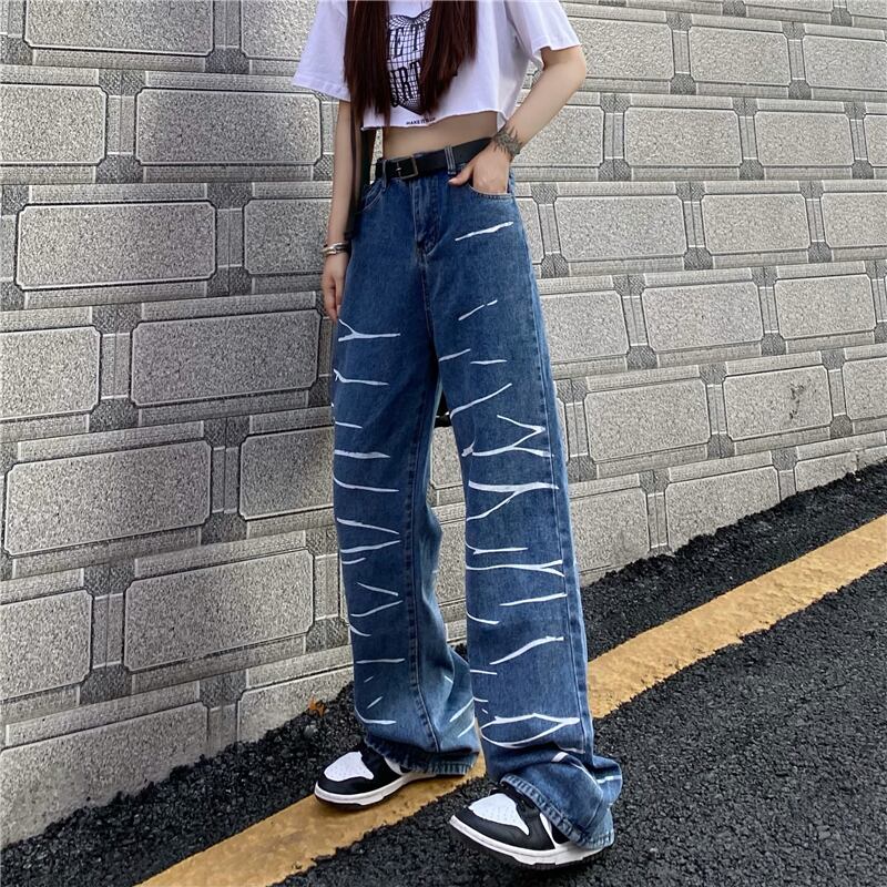 ジーンズ レディース韓国ファッショントレンドスタイルスタンダードルーズハイウェストウェスト薄手ワイドレッグ レトロ 原宿 ワイドパンツ ウエスト Studios28873309730 | pLegLad Studios