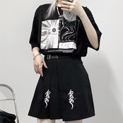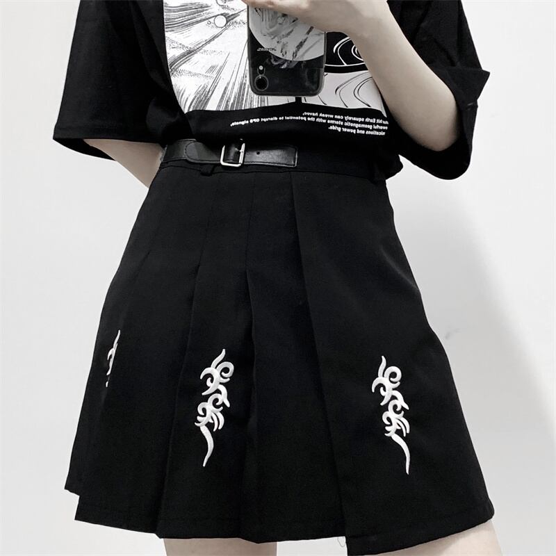 ウェストプリーツスカート レディース夏服韓国ファッショントレンドスタイルスタンダード刺繍ブラック薄手Aライン レトロ 原宿 夏物 ウエスト Studios16892685454 | pLegLad Studios