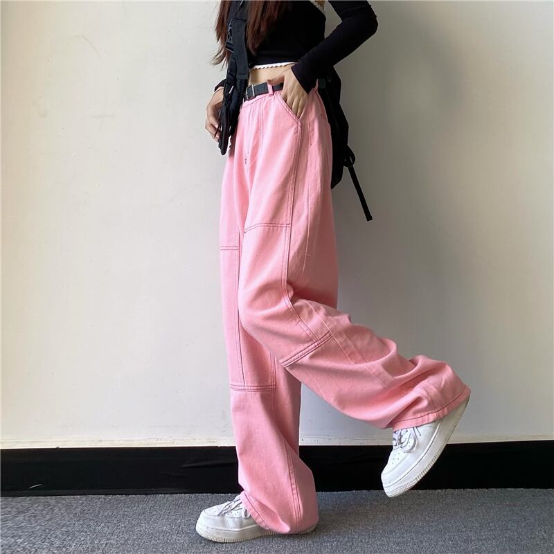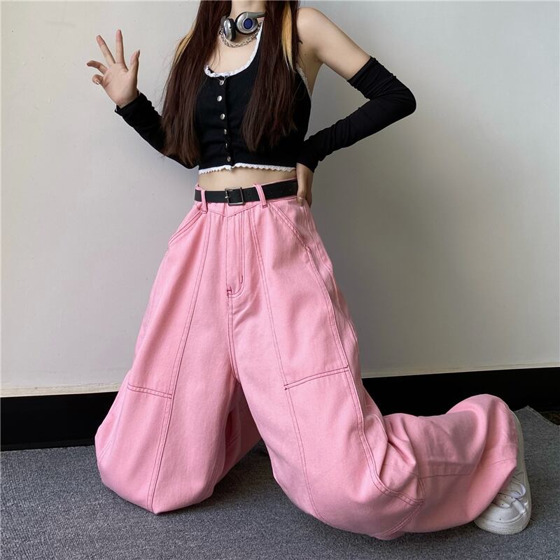 ジーンズ レディース夏服韓国ファッショントレンドスタンダードルーズハイウェストウェスト薄手ワイドレッグ ピンク レトロ ストリート 夏物 ワイドパンツ スタイル ウエスト Studios83604730222 | pLegLad Studios