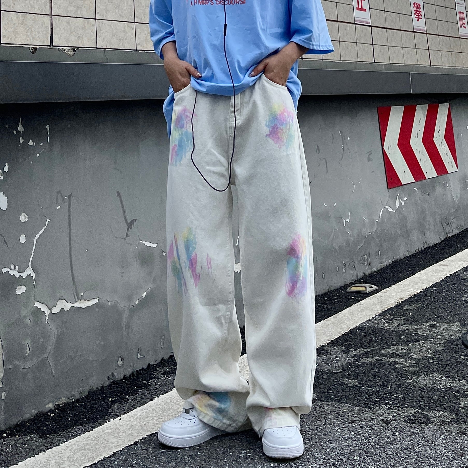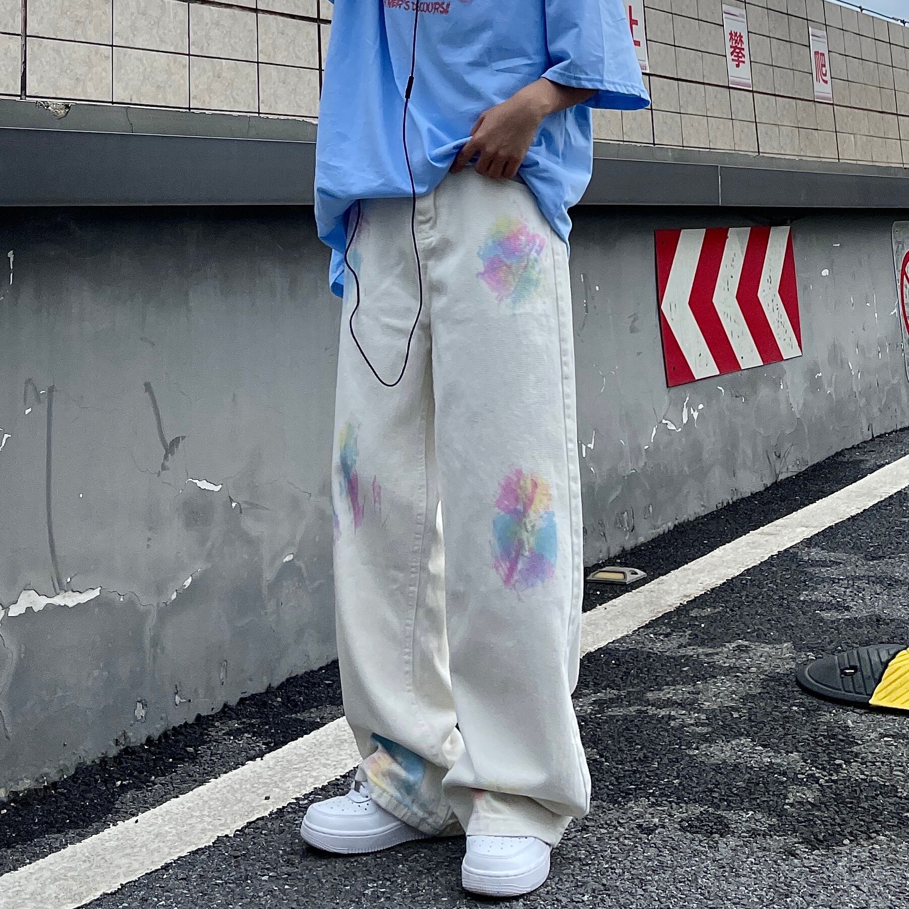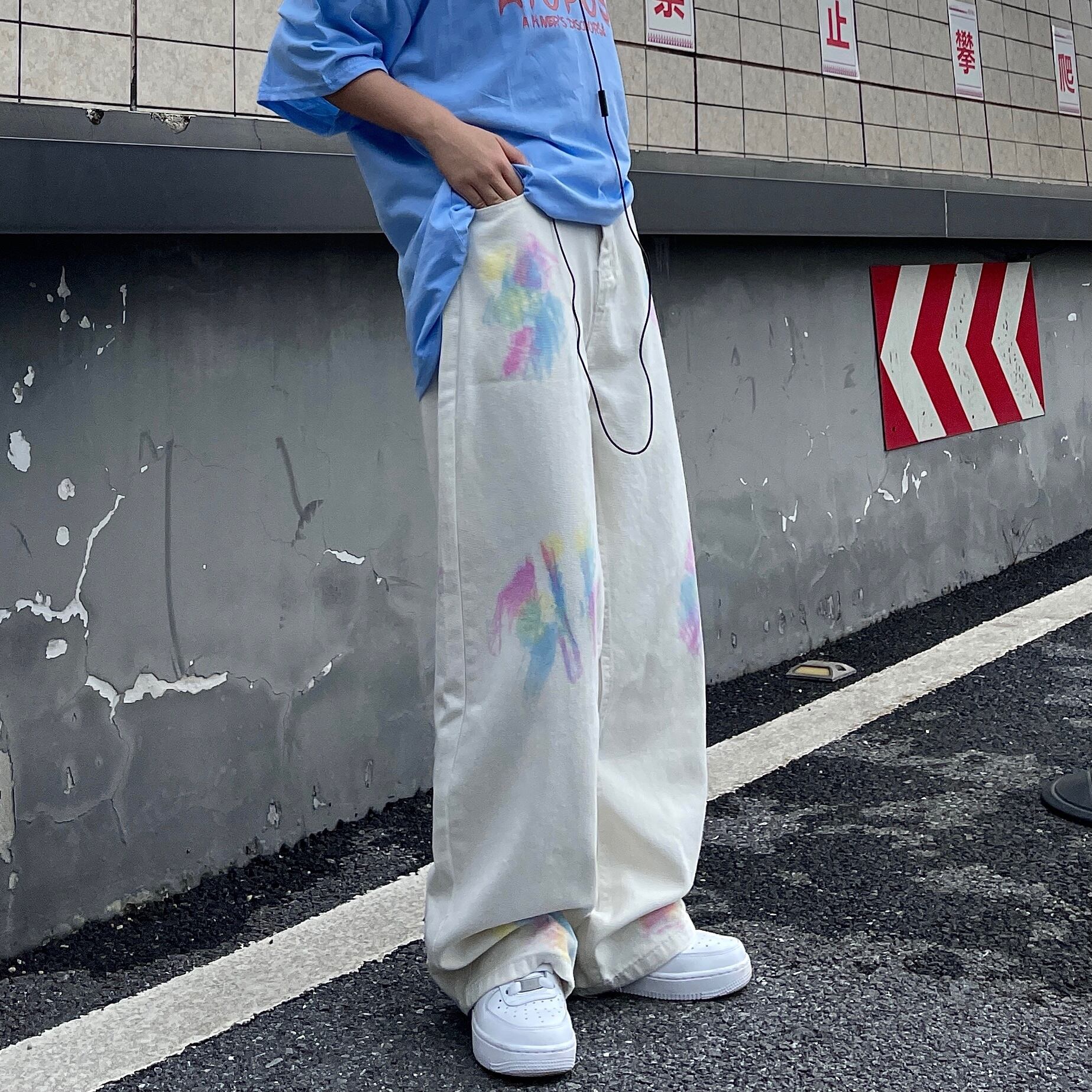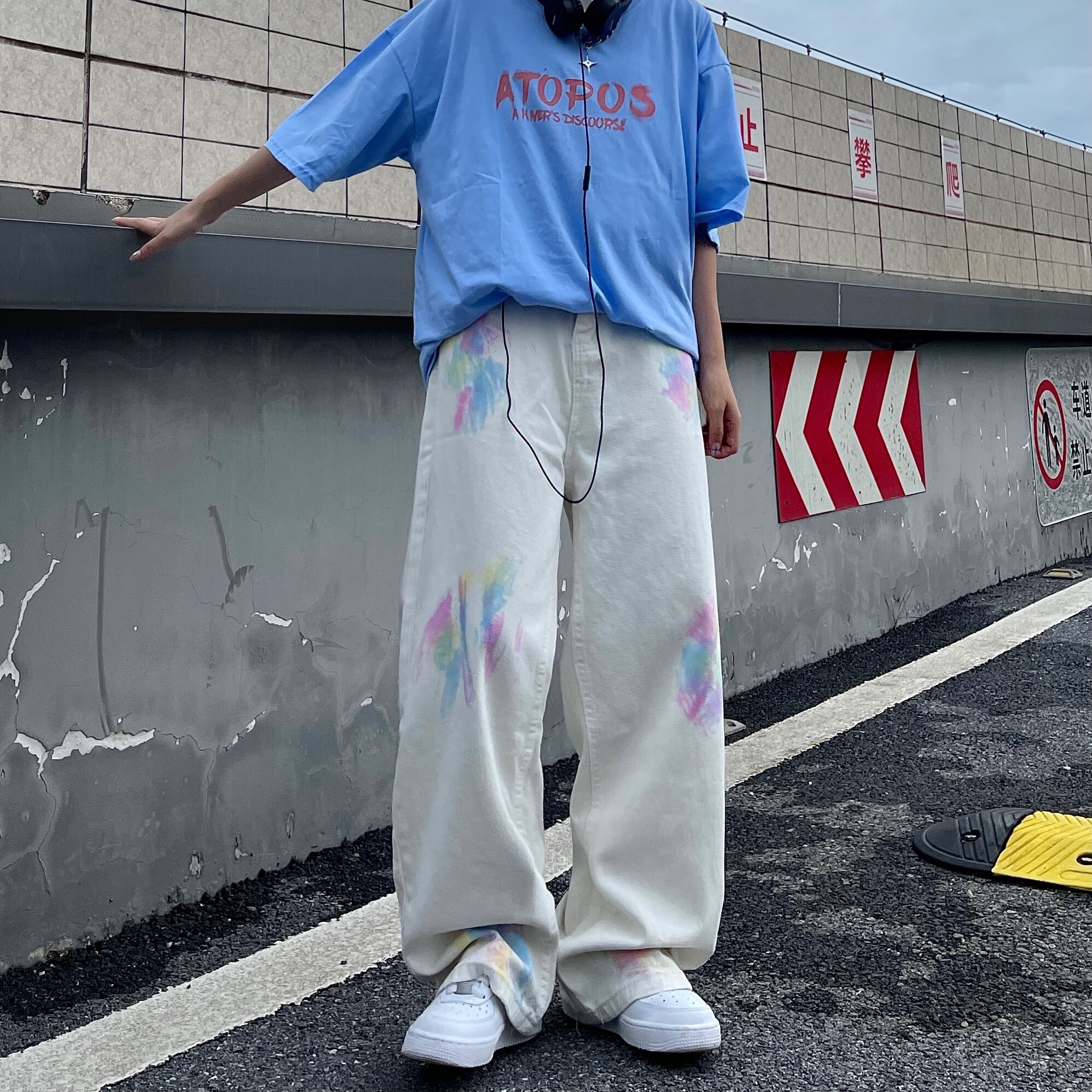ホワイトジーンズ レディース夏服韓国ファッショントレンドスタンダードカラーハイウェストウェストルーズワイドレッグパンツ レトロ 夏物 ワイドパンツ スタイル ウエスト Studios44392237306 | pLegLad Studios