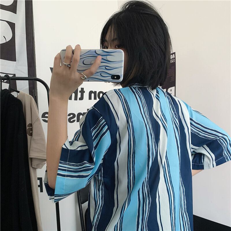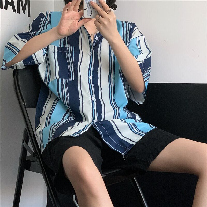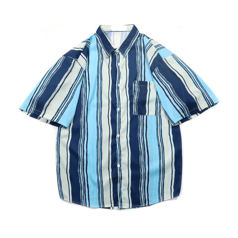 夏服韓国ファッショントレンドスタンダードストライプカラーヴィンテージカジュアルルーズシャツメンズレディース レトロ ストリート 夏物 ビンテージ ボーイズ スタイル Studios21790425534 | pLegLad Studios