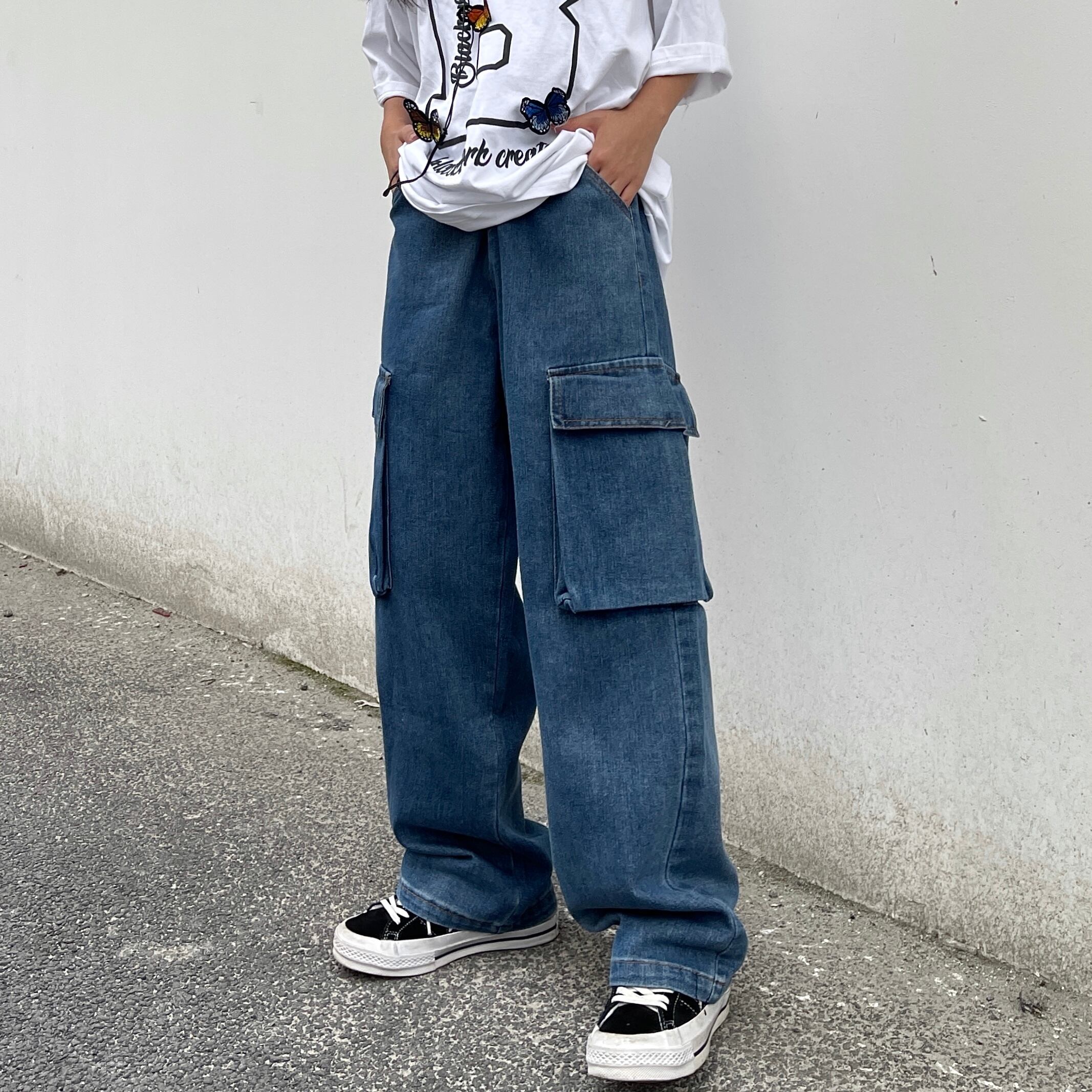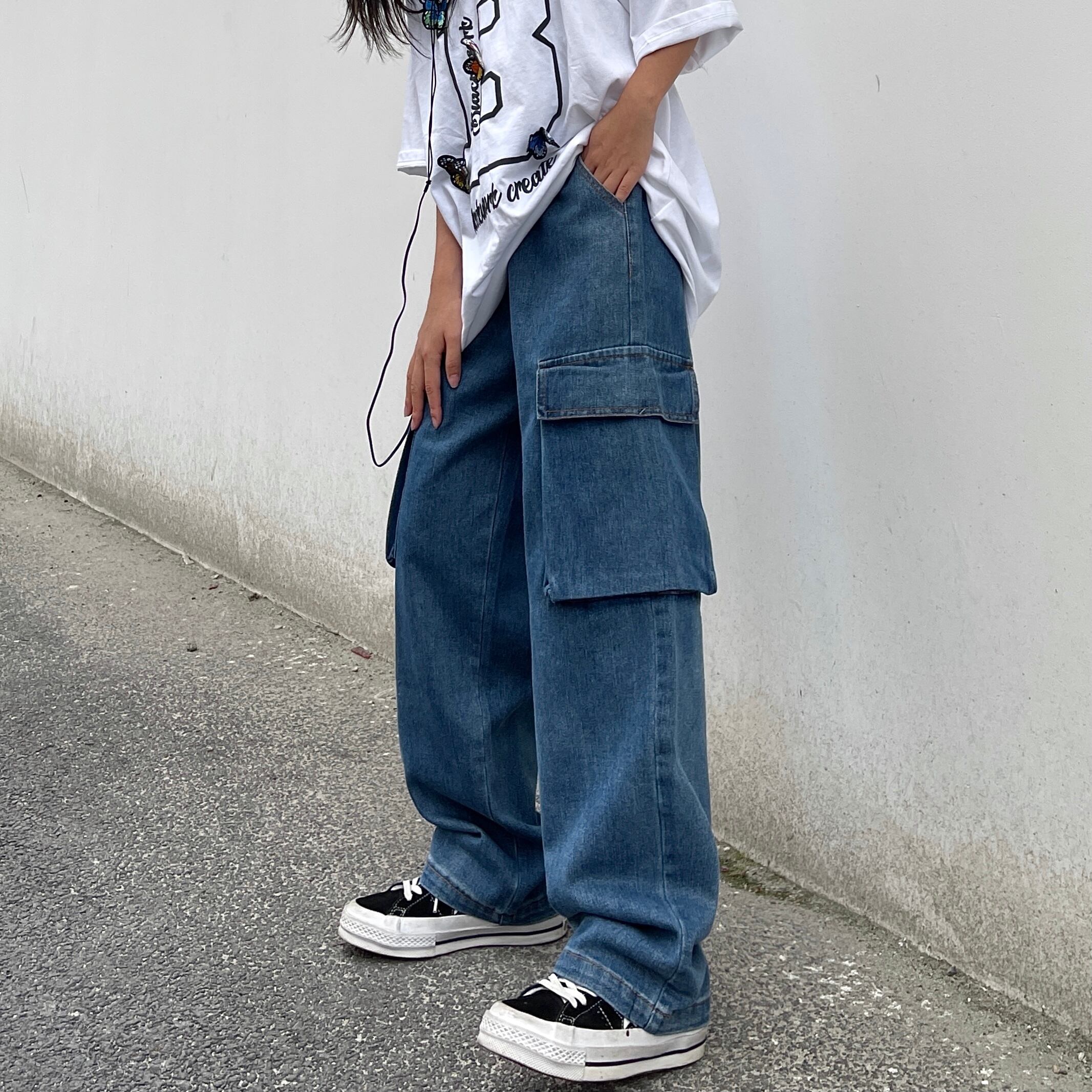 ジーンズ レディース韓国ファッショントレンドスタンダードポケットハイウェストウェストルーズワイドレッグパンツ レトロ ストリート ワイドパンツ スタイル ウエスト Studios73675304731 | pLegLad Studios