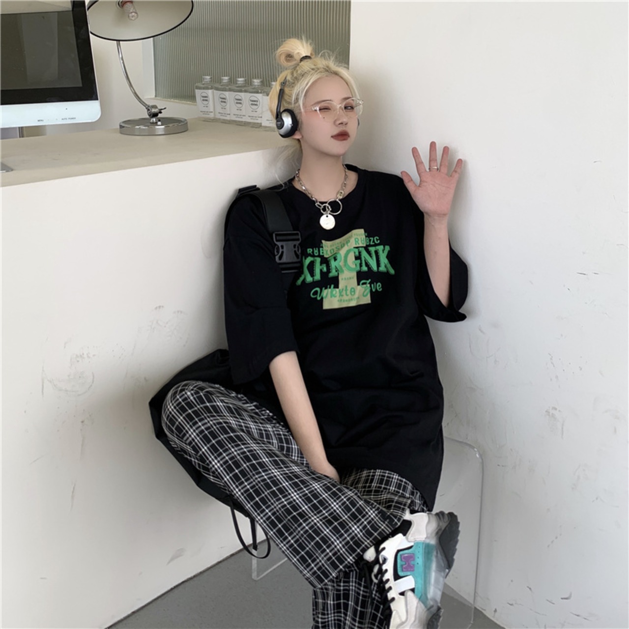 夏服韓国ファッショントレンドスタンダードプリントルーズカジュアルラウンドネックTシャツトップス レディース レトロ 夏物 Oネック スタイル Studios96024959005 | pLegLad Studios