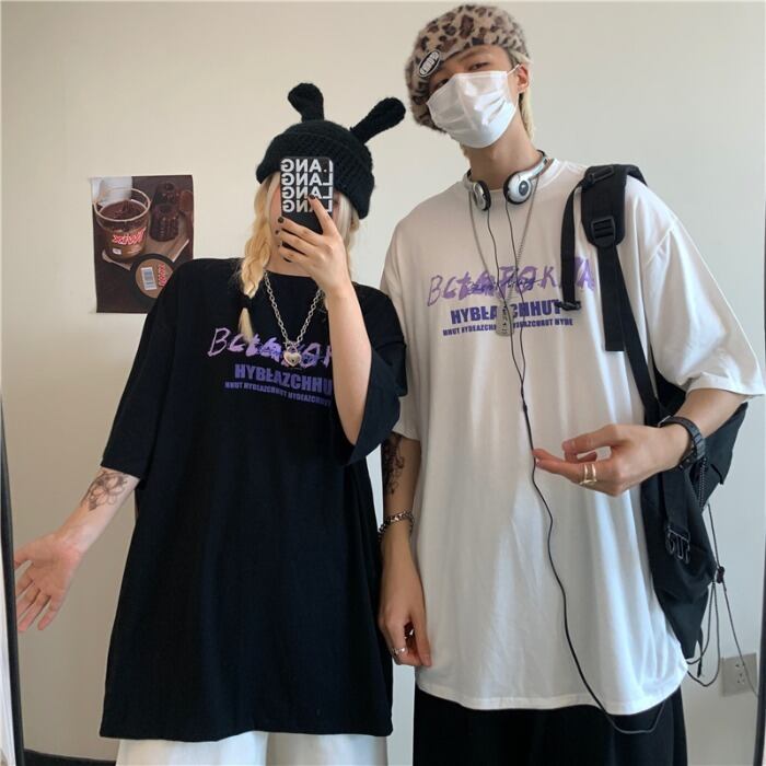 夏服韓国ファッショントレンドスタイルプリントルーズラウンドネック半袖スリーブTシャツメンズレディース ショート ハーフスリーブ ストリート 原宿 夏物 Oネック Studios68773176646 | pLegLad Studios
