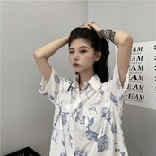 夏服韓国ファッショントレンドスタイルスタンダードルーズカジュアルFlowerデザイン プリント柄シャツ レディース レトロ 夏物 フラワーデザイン ボーイズ Studios54884216077 | pLegLad Studios