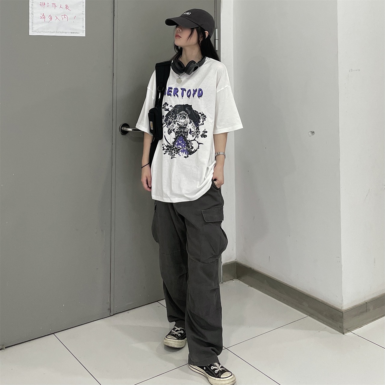 夏服韓国ファッショントレンドスタイルスタンダードパターンプリントラウンドネックルーズ半袖スリーブTシャツレディース ショート レトロ ハーフスリーブ ストリート 原宿 夏物 Oネック Studios37493177990 | pLegLad Studios