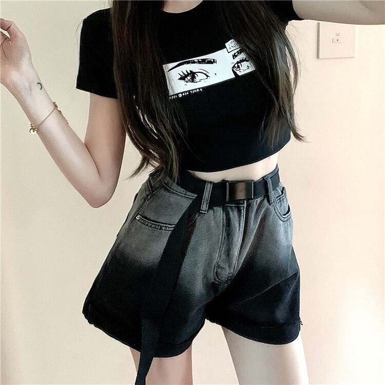 夏服韓国ファッショントレンドカラースタンダードパンツ ハイウェストウェストワイドレッグショーツ レディース レトロ ストリート 夏物 ワイドパンツ スタイル ウエスト Studios29362016171 | pLegLad Studios