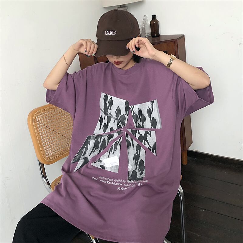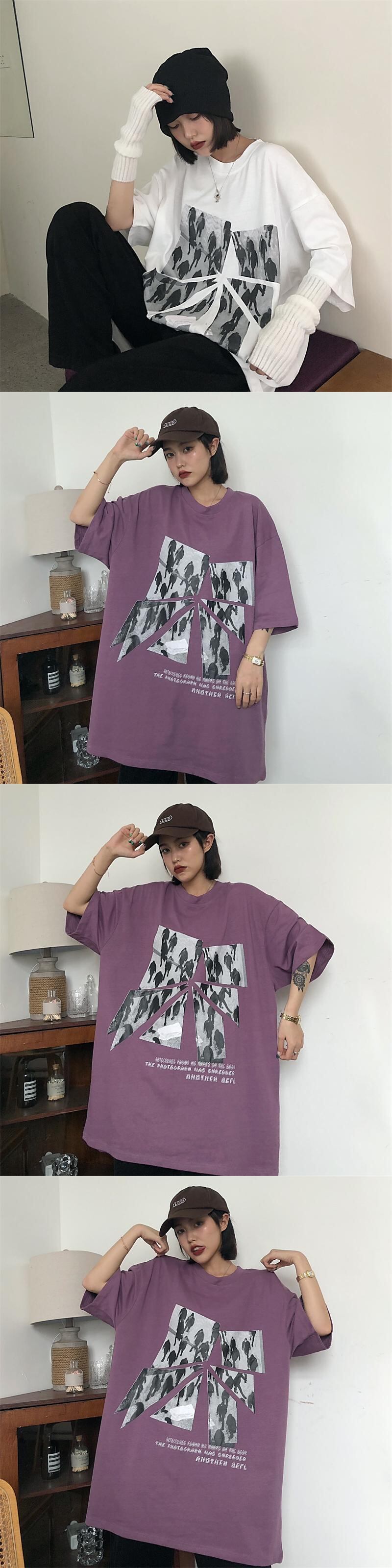 夏服韓国ファッショントレンドパターンプリントルーズラウンドネック半袖スリーブTシャツレディース ショート ハーフスリーブ ストリート 夏物 Oネック スタイル Studios11666012412 | pLegLad Studios