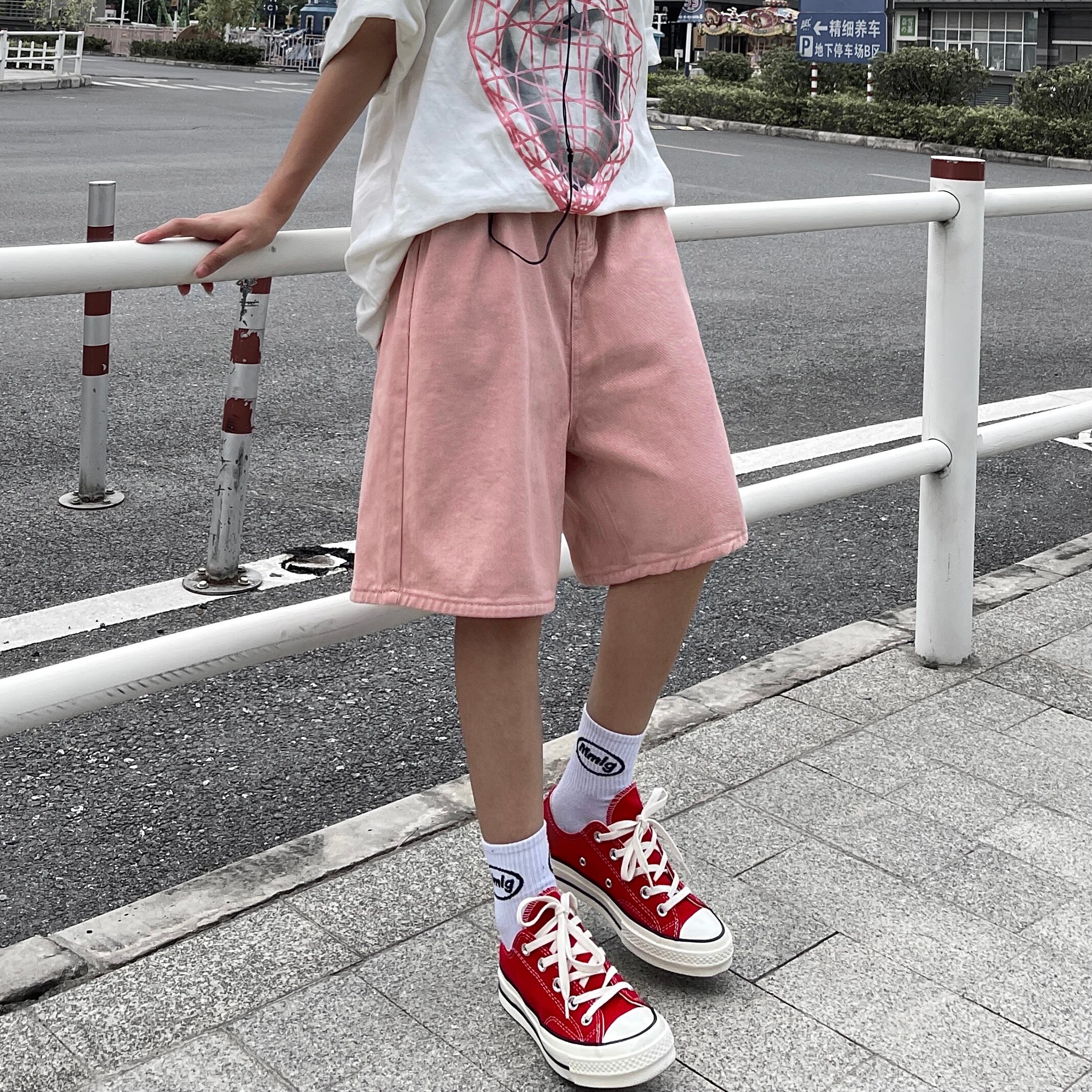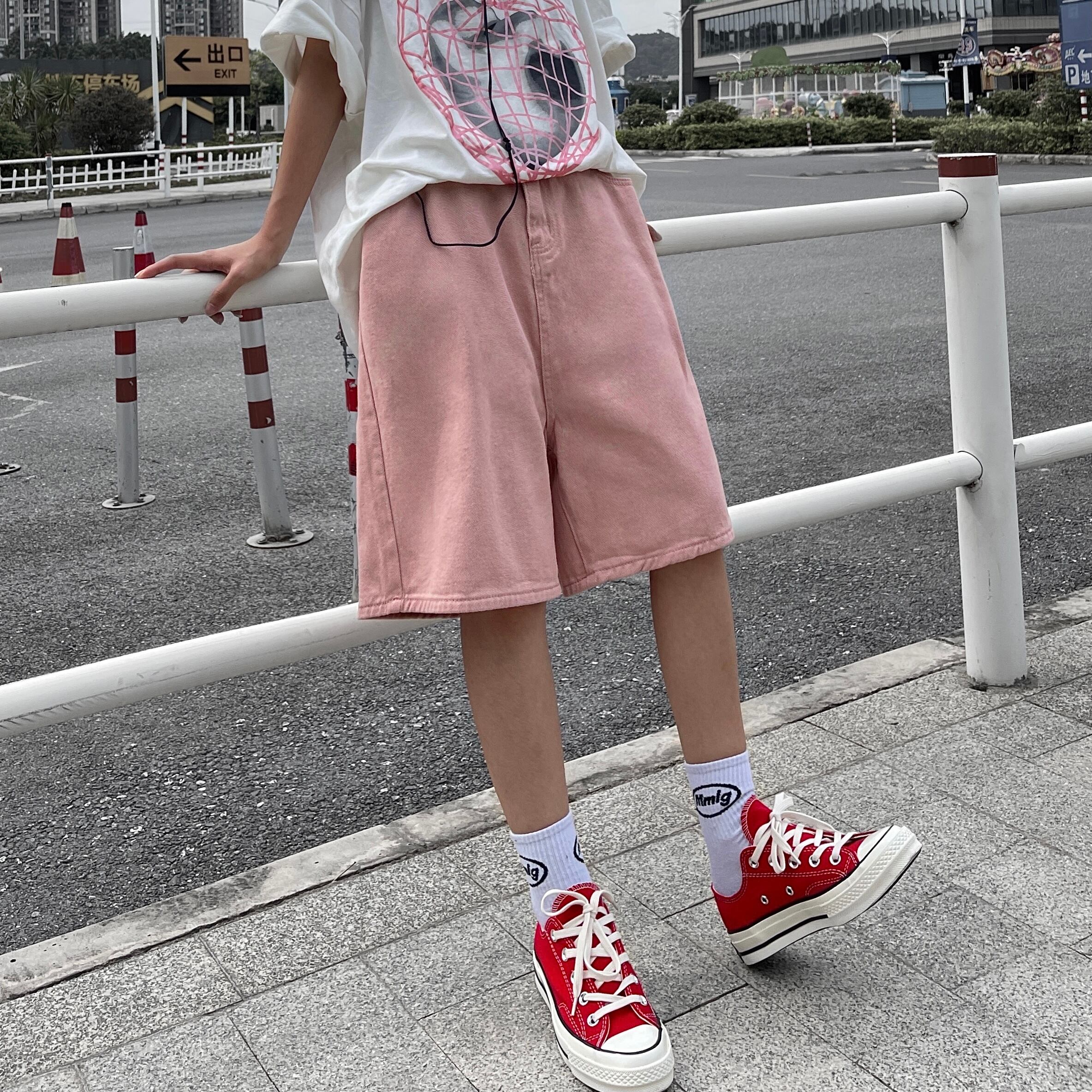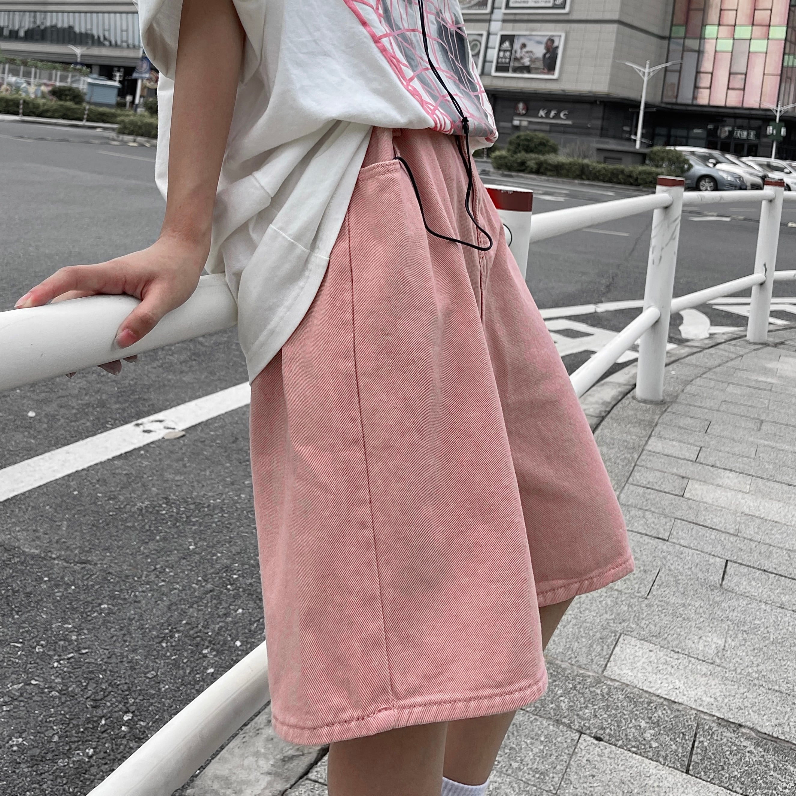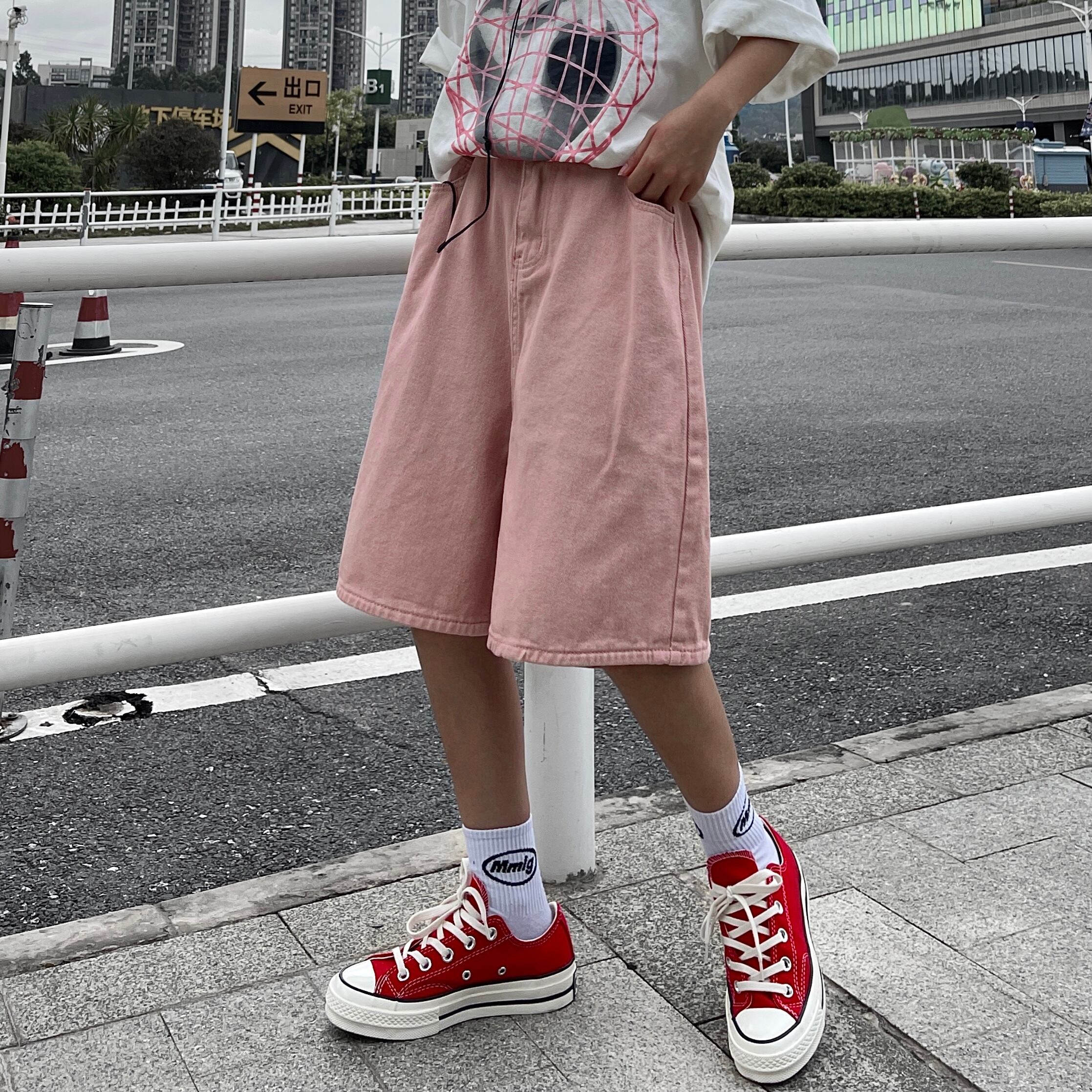 ショーツ レディース夏服韓国ファッショントレンドルーズハイウェストウェスト薄手ワイドレッグパンツ ピンク ストリート 夏物 ワイドパンツ スタイル ウエスト Studios34668767949 | pLegLad Studios