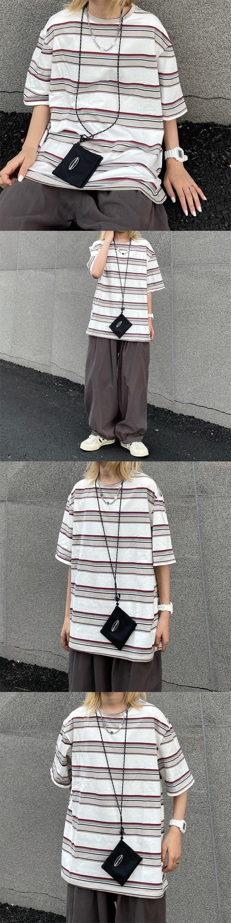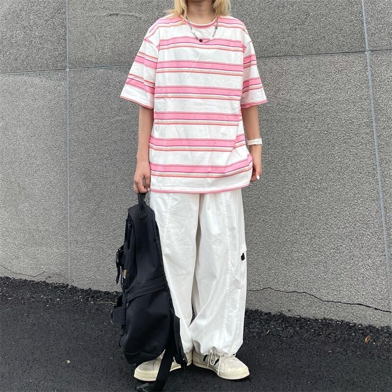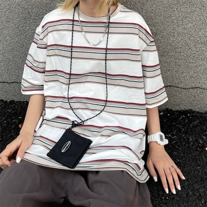 夏服韓国ファッショントレンドスタンダードカラーストライプカジュアルトップス ルーズラウンドネックTシャツレディース レトロ 夏物 Oネック スタイル Studios61468600332 | pLegLad Studios