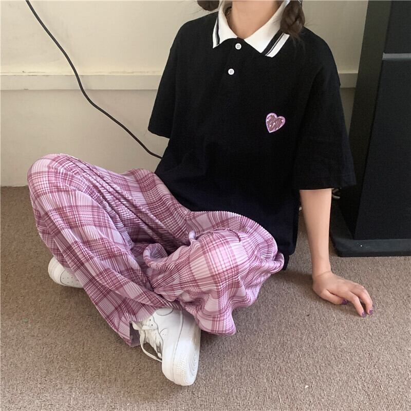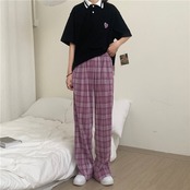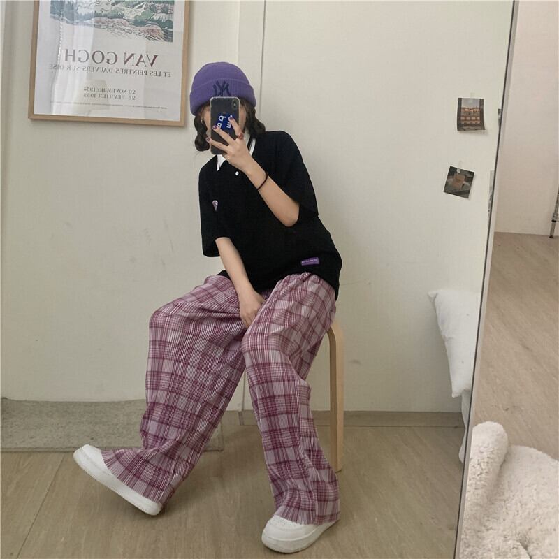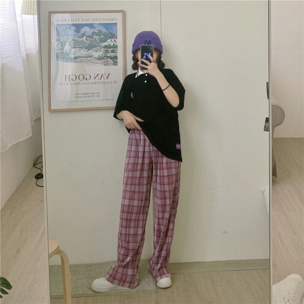格子柄カジュアルパンツ レディース夏服韓国ファッショントレンドスタンダードルーズハイウェストウェスト薄手ストレッチワイドレッグ レトロ エラスティック 伸縮 夏物 ワイドパンツ スタイル ウエスト Studios33825223166 | pLegLad Studios