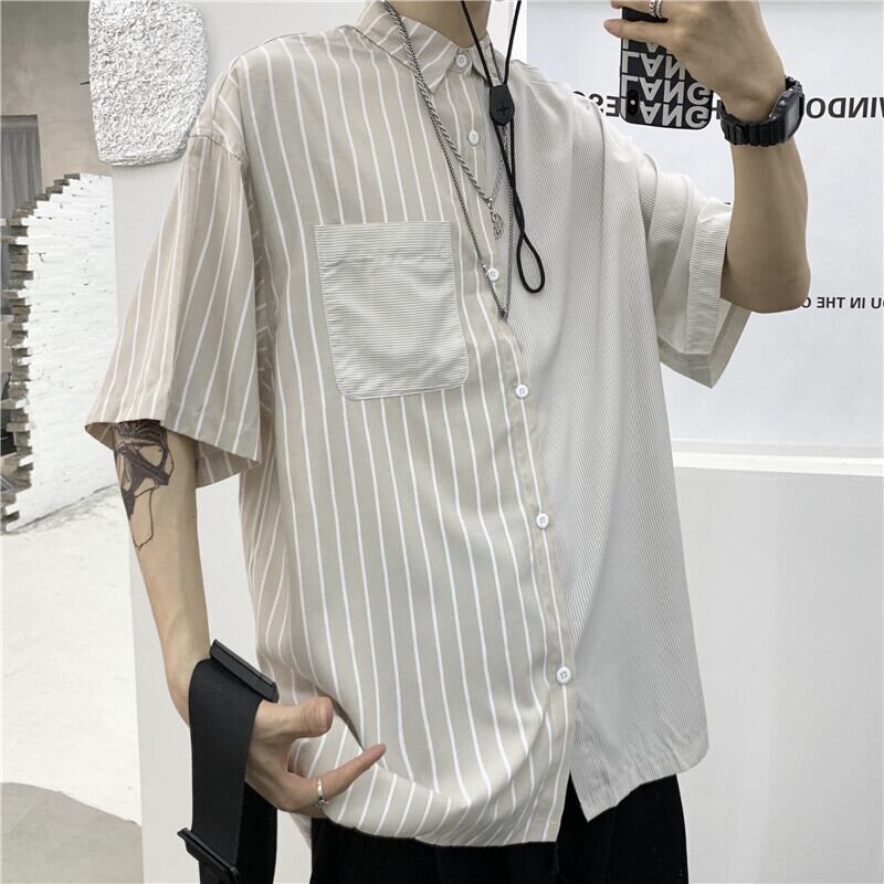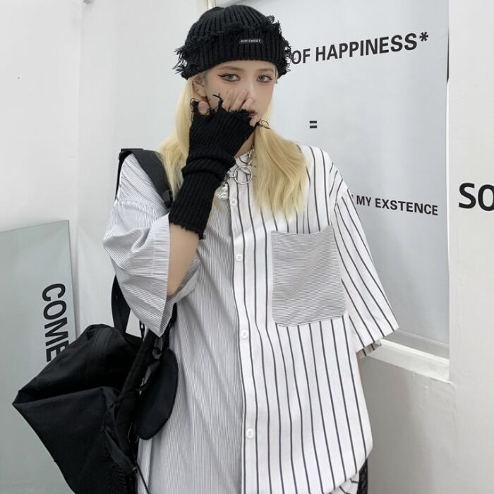 スタンダードシャツ レディース夏服韓国ファッショントレンドスタイルストライプカジュアルルーズ レトロ ストリート 原宿 夏物 ステッチ Studios35140691350 | pLegLad Studios