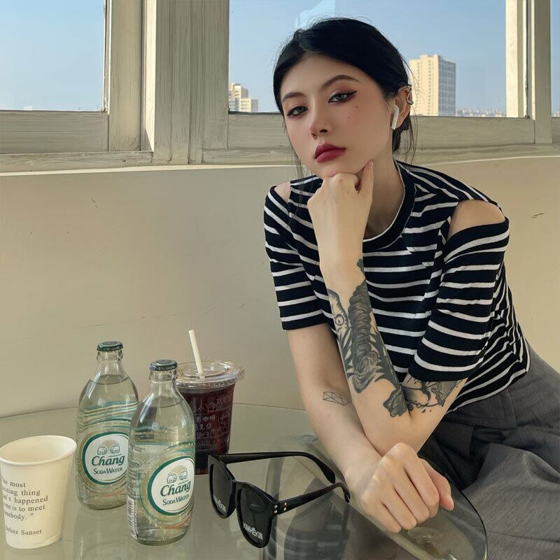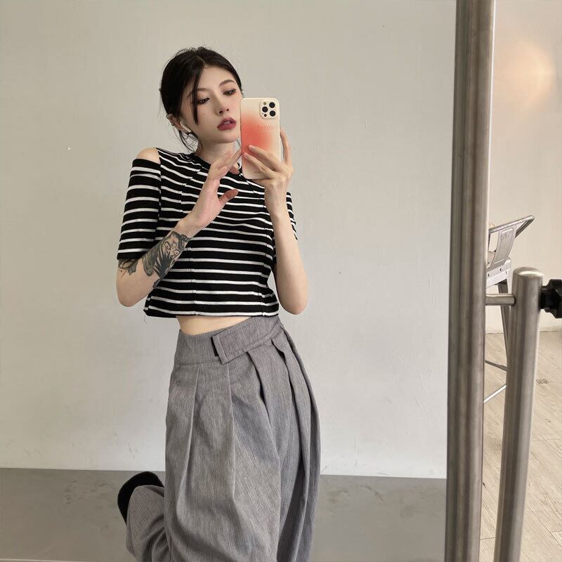 夏服韓国ファッショントレンドスタンダードスタイルストラップレスショートTシャツトップス レディース レトロ ストリート 夏物 ボーイズ Studios41620837014 | pLegLad Studios