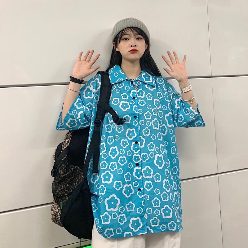 夏服韓国ファッショントレンドスタンダードFlowerデザイン プリントルーズカジュアルシャツ レディース レトロ 夏物 フラワーデザイン スタイル Studios24982436046 | pLegLad Studios