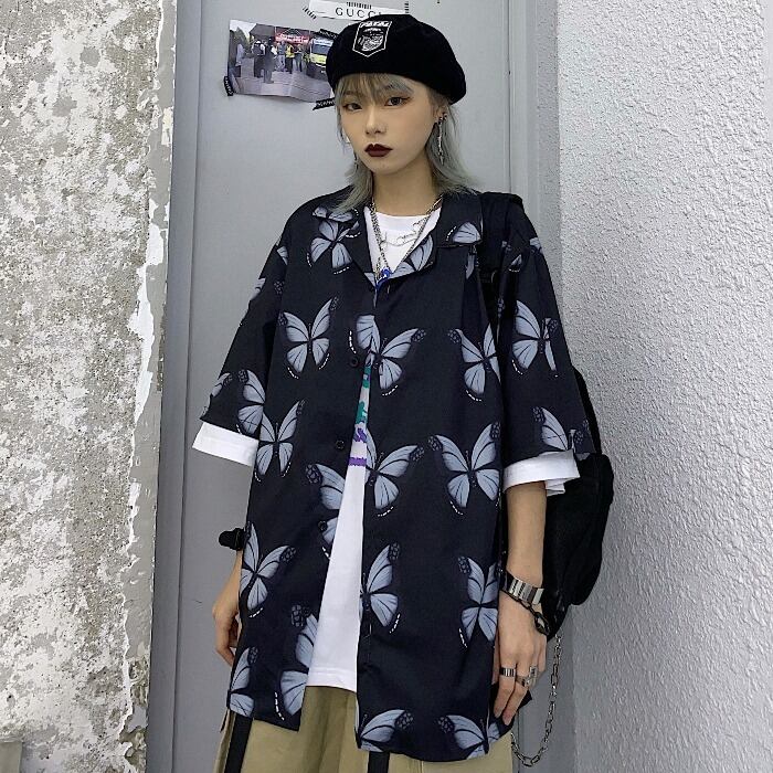 夏服韓国ファッショントレンドスタイルスタンダードButterflyデザイン ルーズカジュアルシャツ レディース レトロ ストリート 原宿 夏物 Studios67845561188 | pLegLad Studios